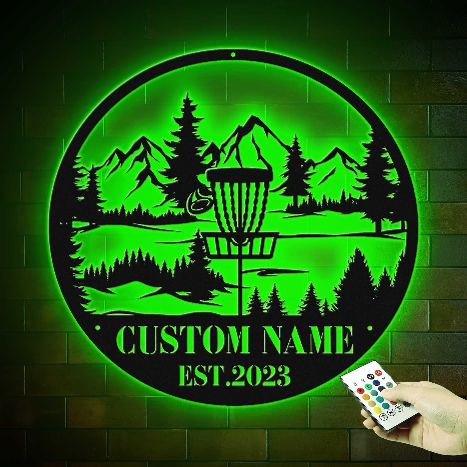 Custom Disc Golf Player Metal Wall Art LED Lights with Name – Personalized Disc Golf Sign for Bedroom, Garage, Boys Room, Sports Themed Gift for Dad, Remote Control Light Model-Disc03