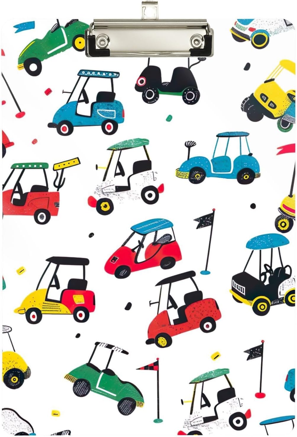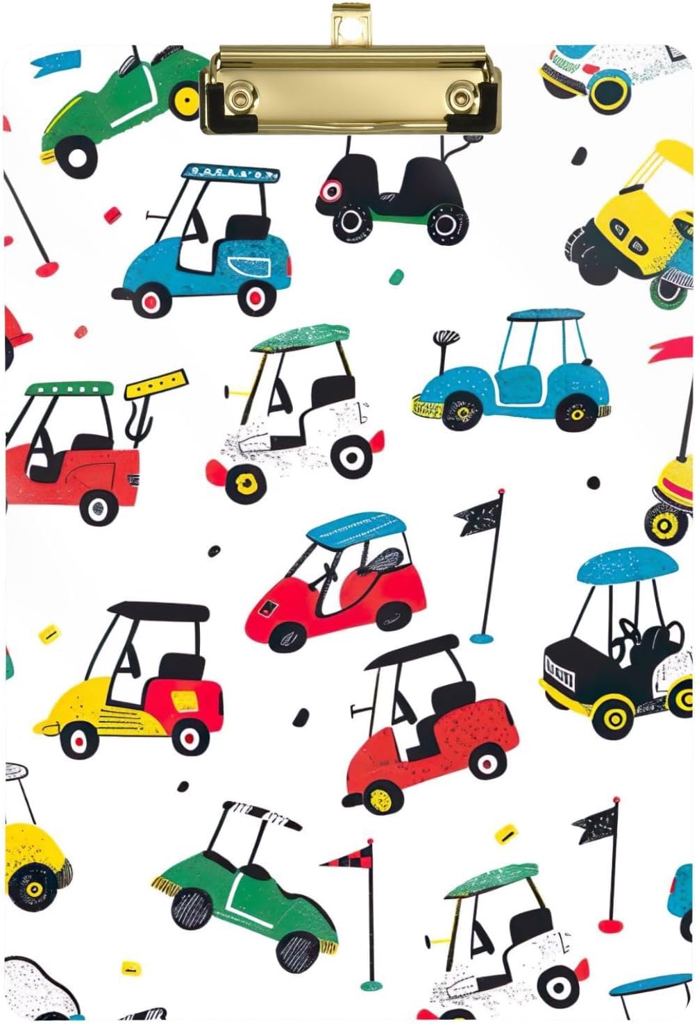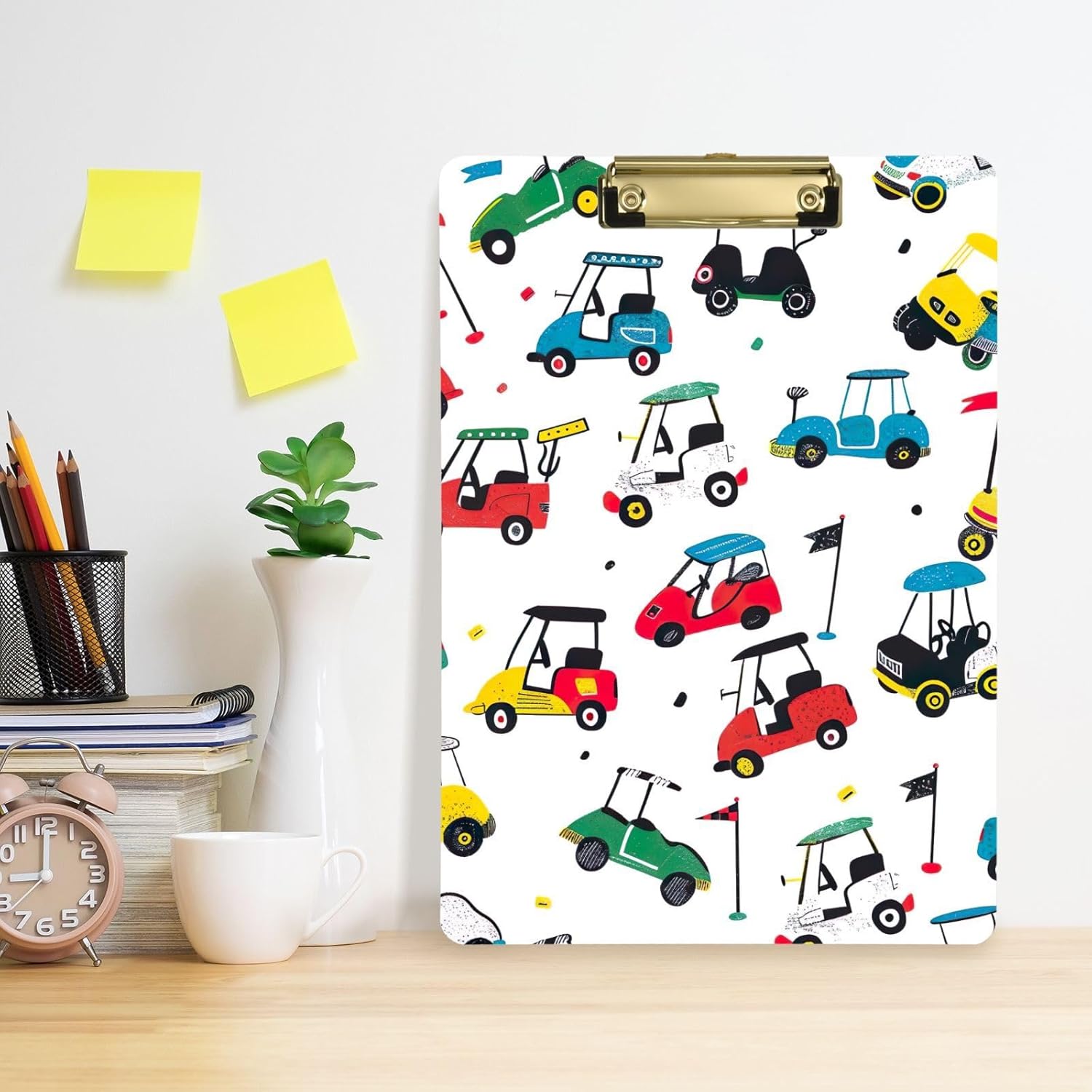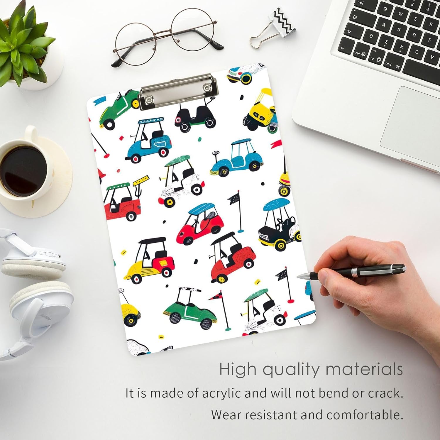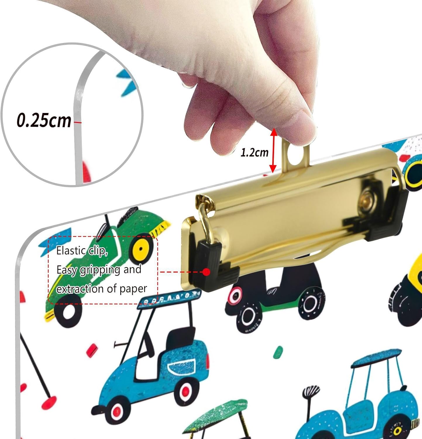 Golf CarThick Clear Acrylic Clipboard with Shiny Gold/Silver Finish Clip21344438