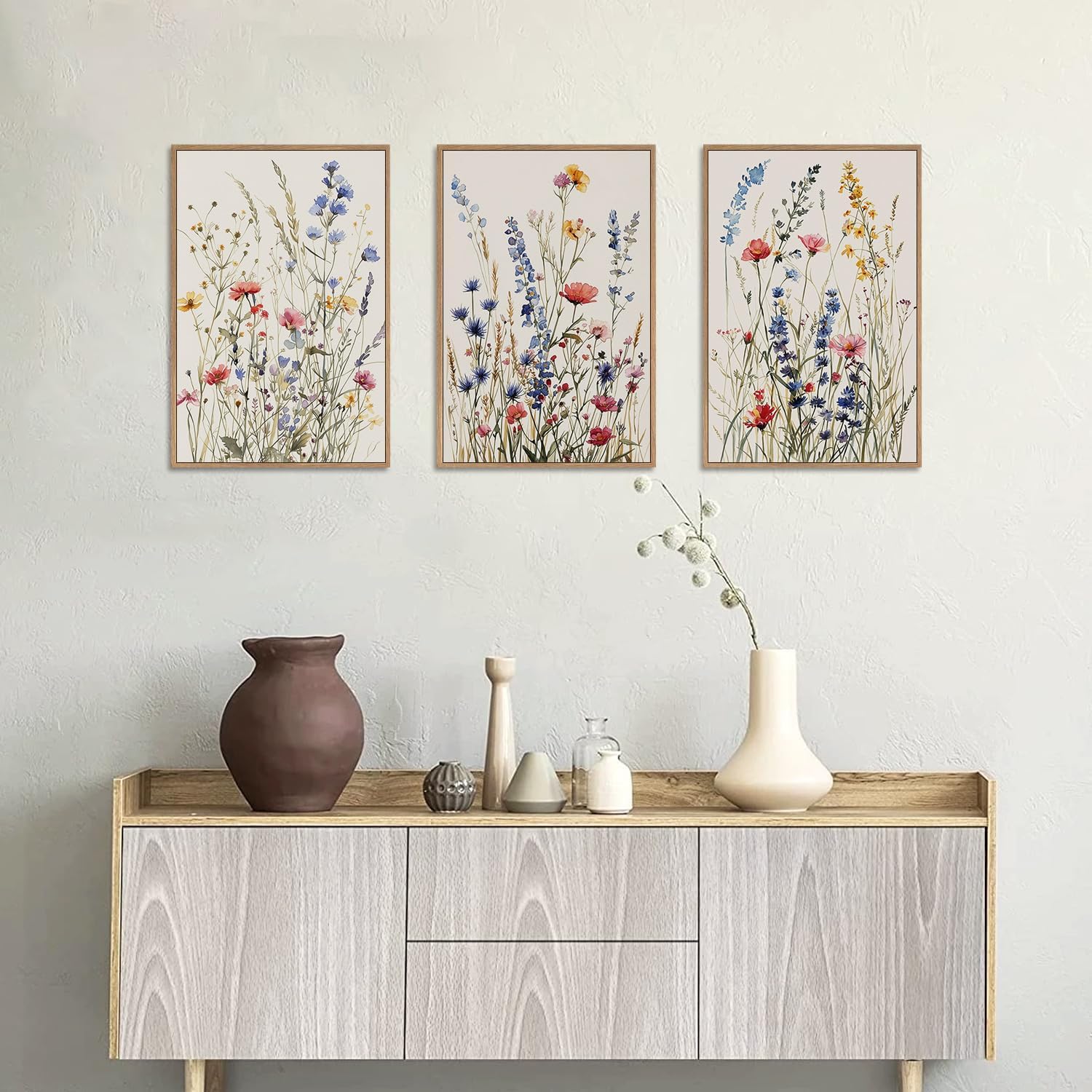 - Wildflower Canvas Wall Art – Rustic Elegance in Every Stroke This set features beautifully printed wildflowers on premium canvas, delivering a vintage botanical look with rich watercolor textures — perfect for farmhouse, cottagecore, or boho-inspired interiors.