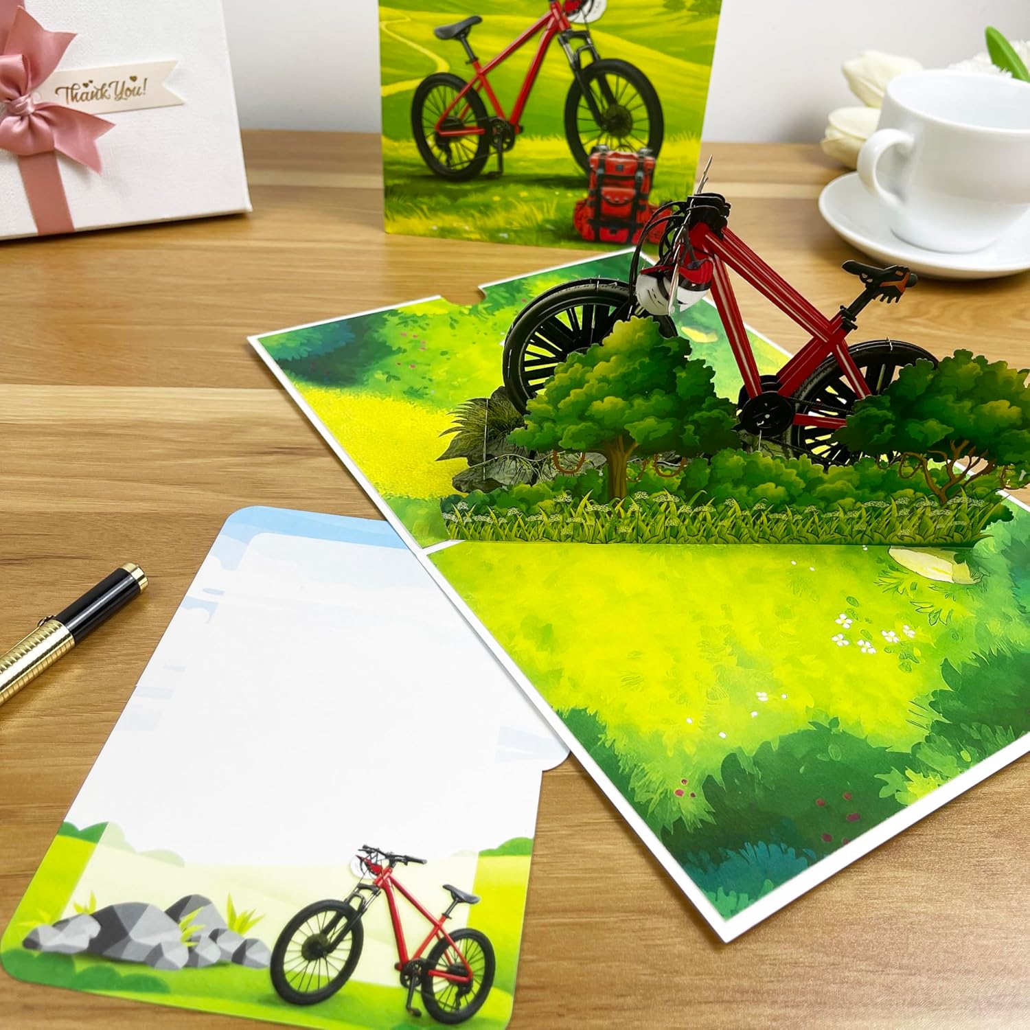 - Epic Mountain Bike Design: Features a dynamic 3D pop-up mountain bike scene with rugged details, perfect for cycling enthusiasts and outdoor adventurers.