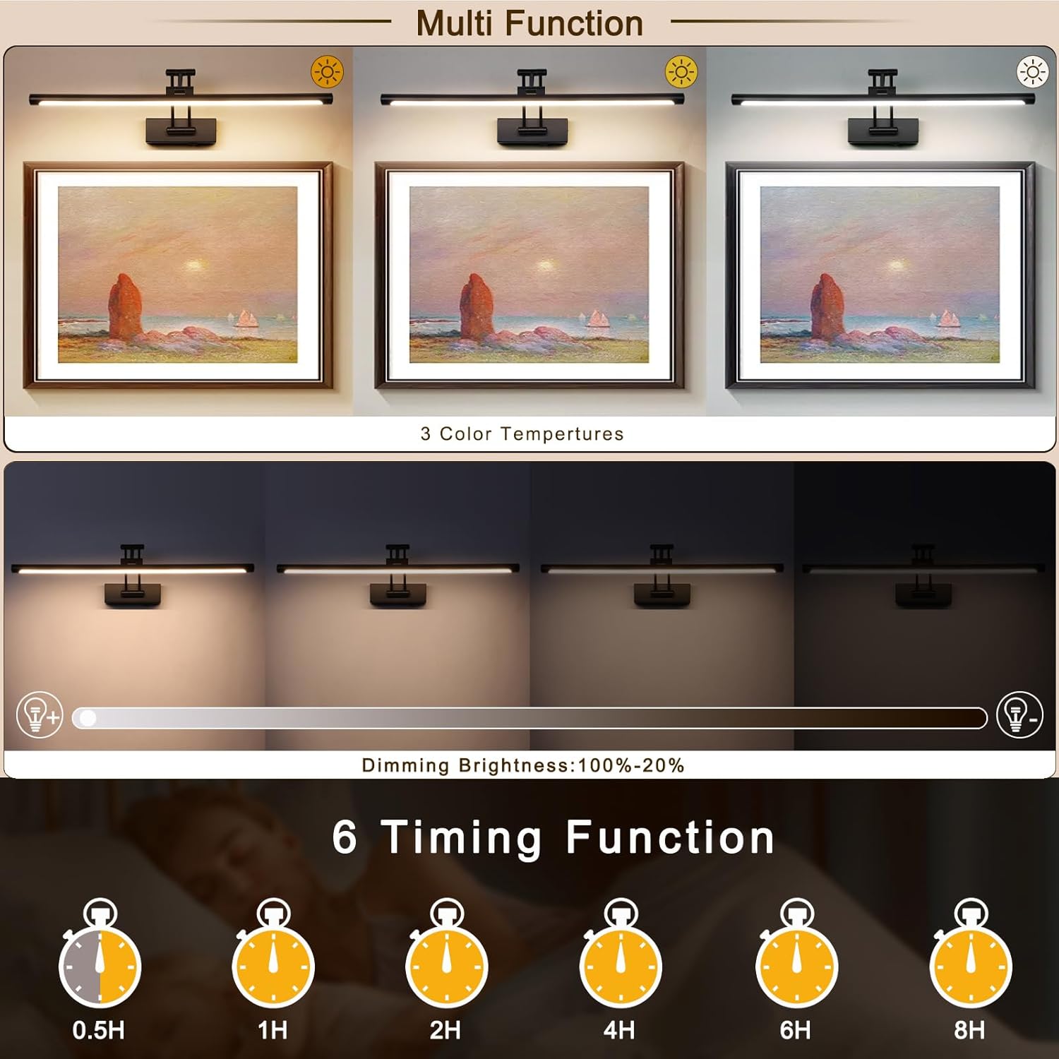- 【3CCT & DIMMABLE FUNCTION】: The battery operated picture light with remote control to change wall accents lighting color of battery operated wall sconce & dimming brightness (20%-100%) according to your needs