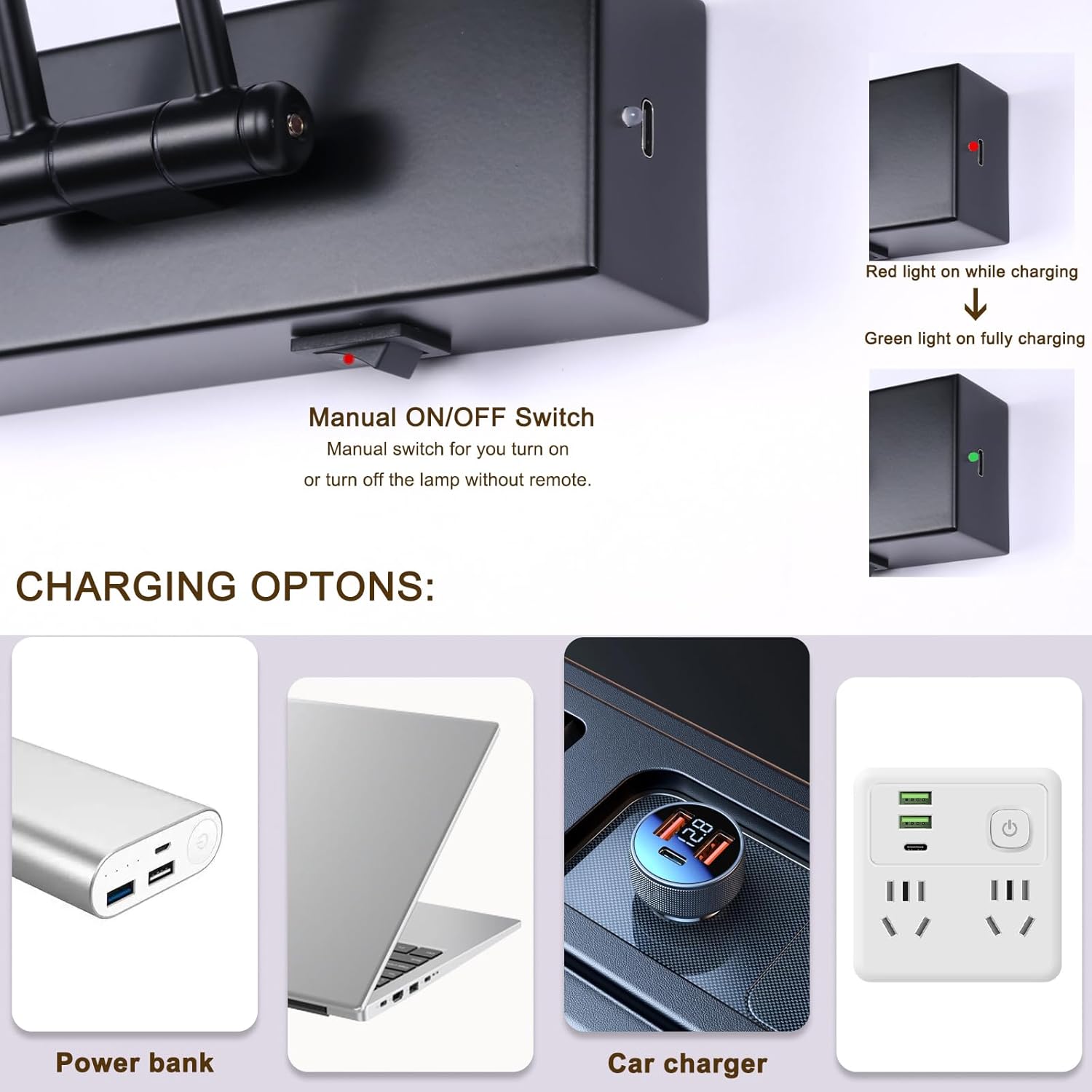 - 【EASY INSTALLATION】: The wall lights battery operated you can fix bracket with screws or stickers, easy to take the battery wall lights down while charging