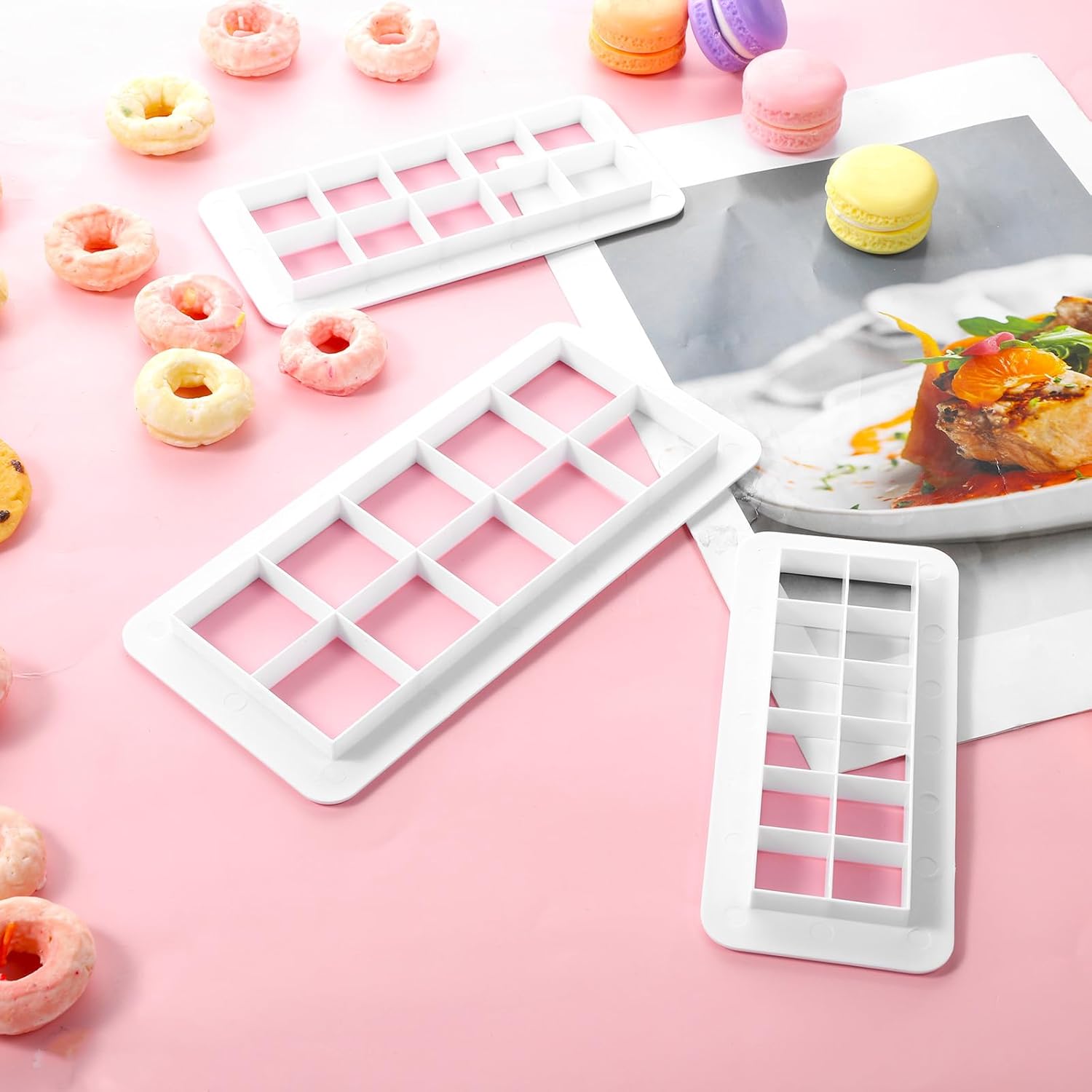 - 【Easy to Use】No additional steps are required to use these square cake cutter. Simply press, roll, and place to create geometric patterns in less than two minutes. Perfect for beginners and professional cake decorators alike, these cutters are great for fondant, sugar paste, and craft clay.