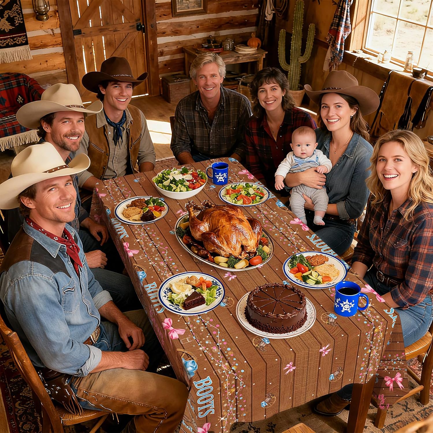 - Color : Boots Or Bows Gender Reveal Tablecloth