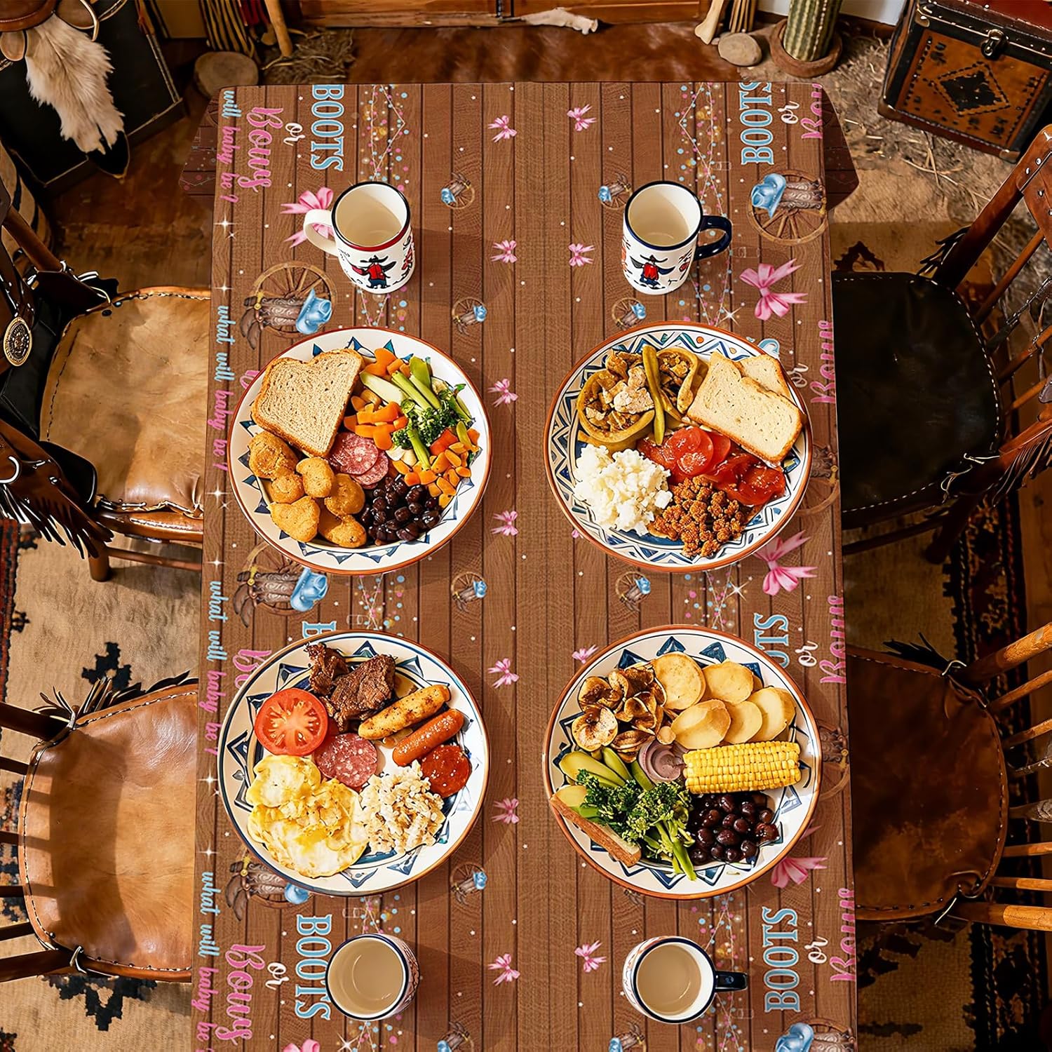 - Cowboy Boots or Bows Gender Reveal Design: Immerse your guests in the sweet anticipation of gender reveal with these tablecloths. Intricately designed and printed with a unique pattern of cowboy boots and bows, the eye-catching design sets a warm and exciting party atmosphere. Cheers of excitement will be your reward when you use these lovely and unique gender reveal party tablecloths