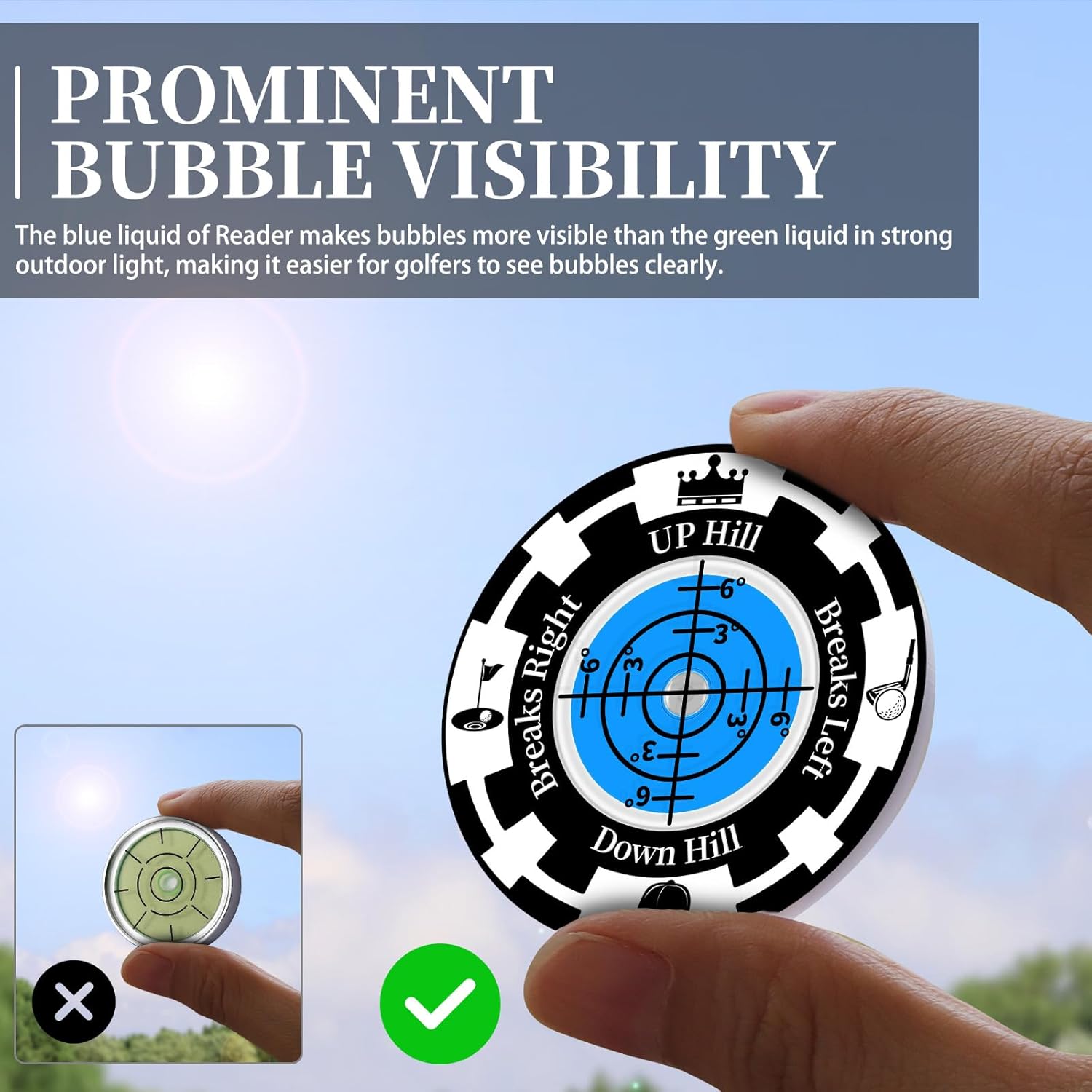 • PROMINENT BUBBLE VISIBILITY: We upgraded and replaced it with black liquid, which makes the bubbles particularly prominent. The liquid in most levels on the market is mostly green, which can make it difficult for golfers to see the bubbles clearly under strong outdoor lighting