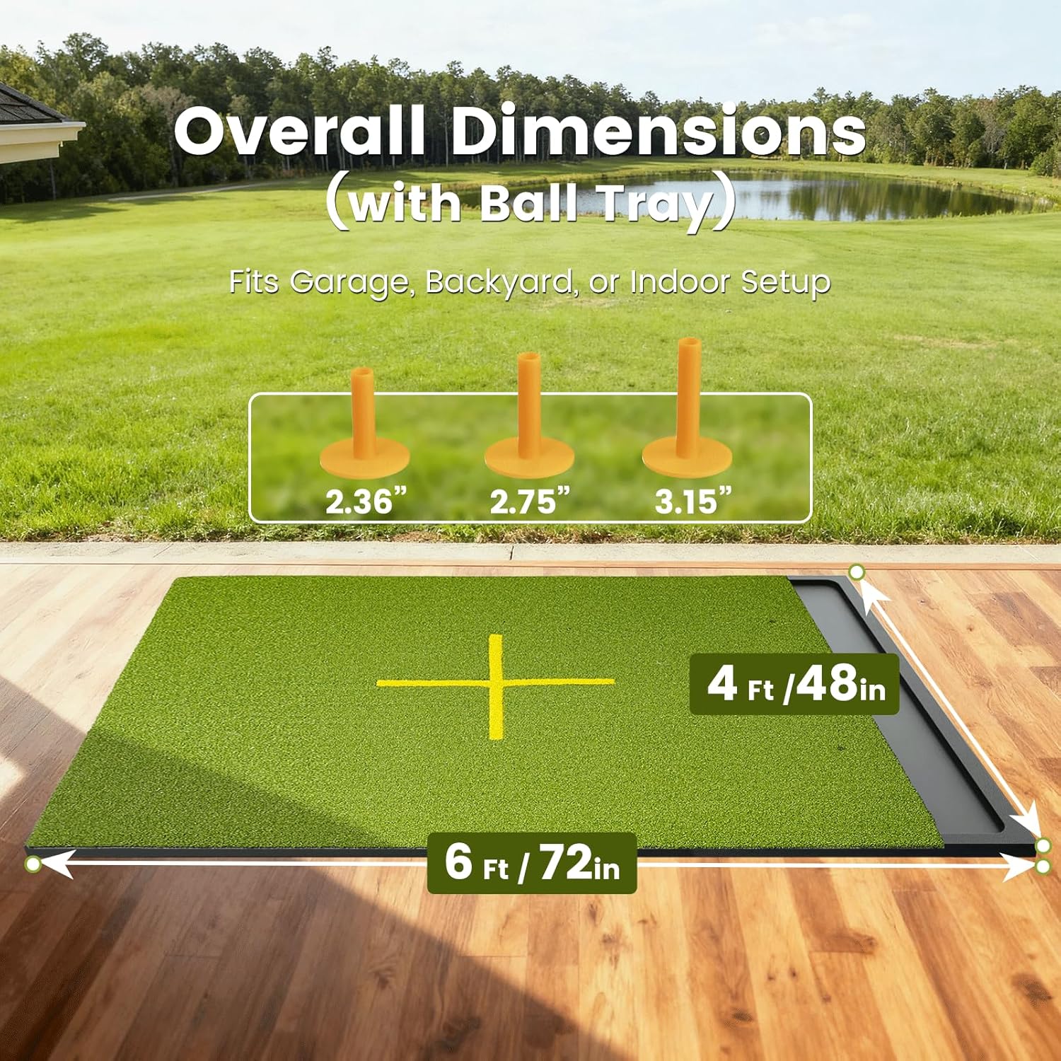 - CONVENIENT BUILT-IN BALL TRAY – Keep your 6x4ft practice mat area tidy and grab golf balls directly with your club — no need to bend repeatedly. Holds up to 100 balls for efficient drives, chips, and approach shot practice on your golf hitting mat