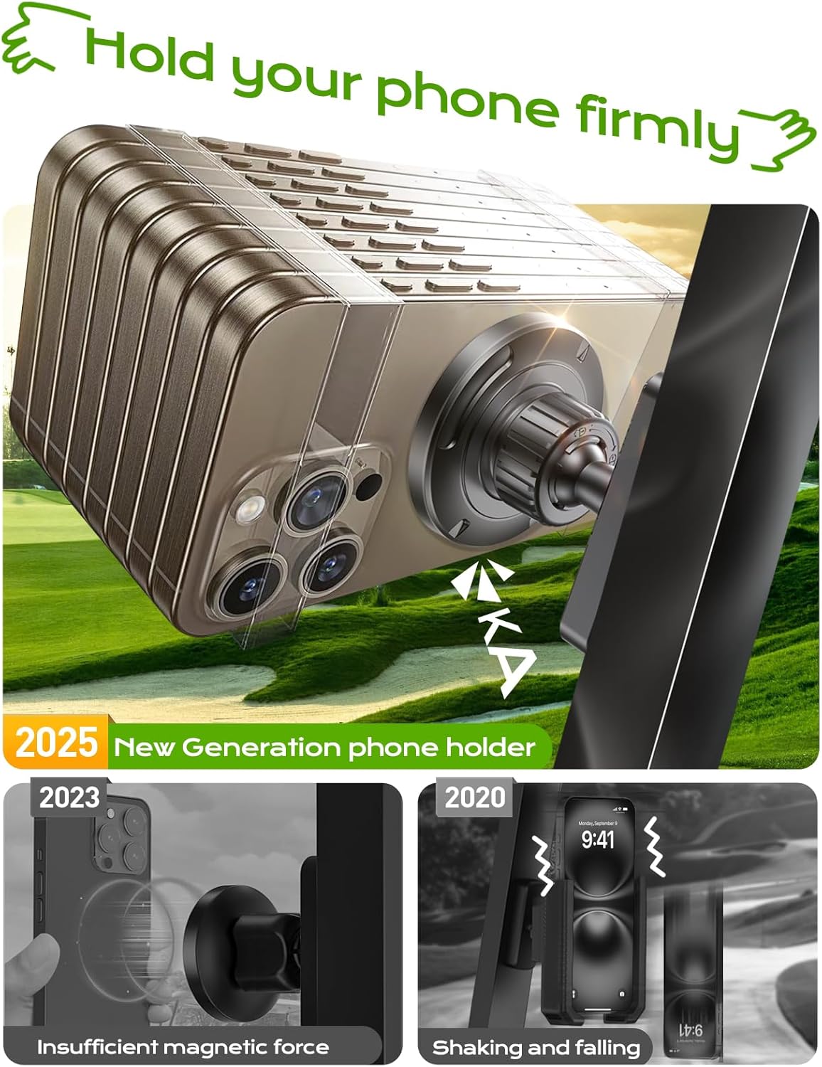 - [Super Strong Magnets]: The magnetic phone holder for golf cart features 24 powerful N56 magnets that precisely aligned to MagSafe in iPhone 12–17 series - holds your phone securely so it won't slip or fall, no constant adjustments needed