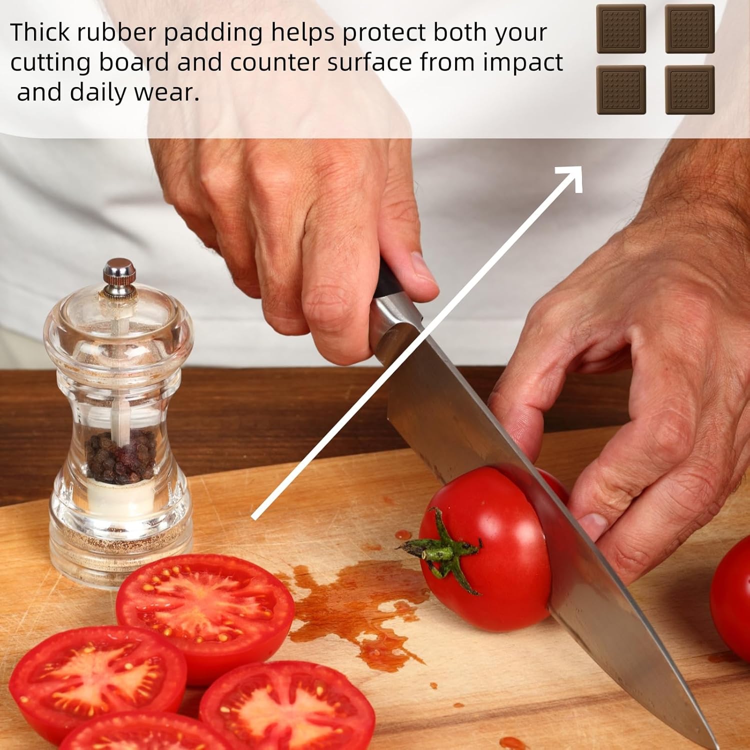 - 【Noise Reduction】Made from a premium, vibration-dampening rubber blend, these feet act as a sound barrier between your cutting board and countertop. They soften the impact of every chop, slice, or dice, drastically reducing clanging and rattling noises that can disturb family members or echo through the kitchen—perfect for early-morning meal prep or quiet evenings.