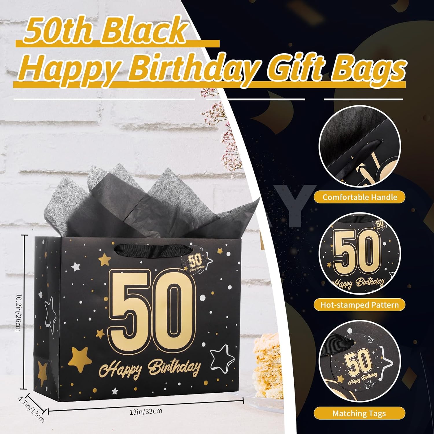 - 【50th Birthday Milestone Gift Bag】This elegant black and gold gift bag is beautifully designed to add a touch of glamour to your 50th birthday and leave a lasting impression at your milestone celebration.