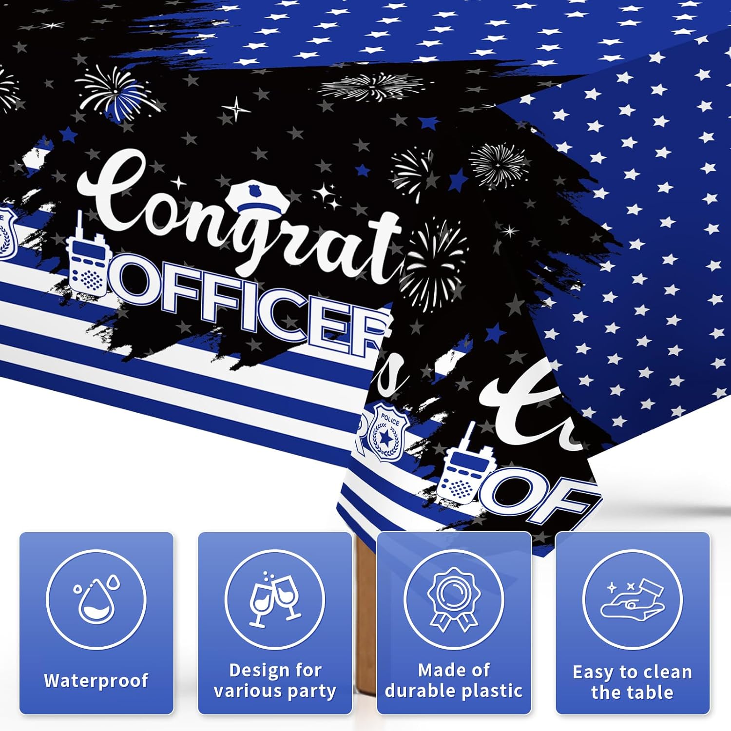 - Easy to Clean Up: These disposable police academy graduate tablecloths are waterproof and stain-resistant, which will keep your tables protected from splashes of drinks, grease, and dirt. You don't have to worry about cleaning up the mess after the party, and just toss them away and save time, allowing you to fully enjoy the party with your friends and family
