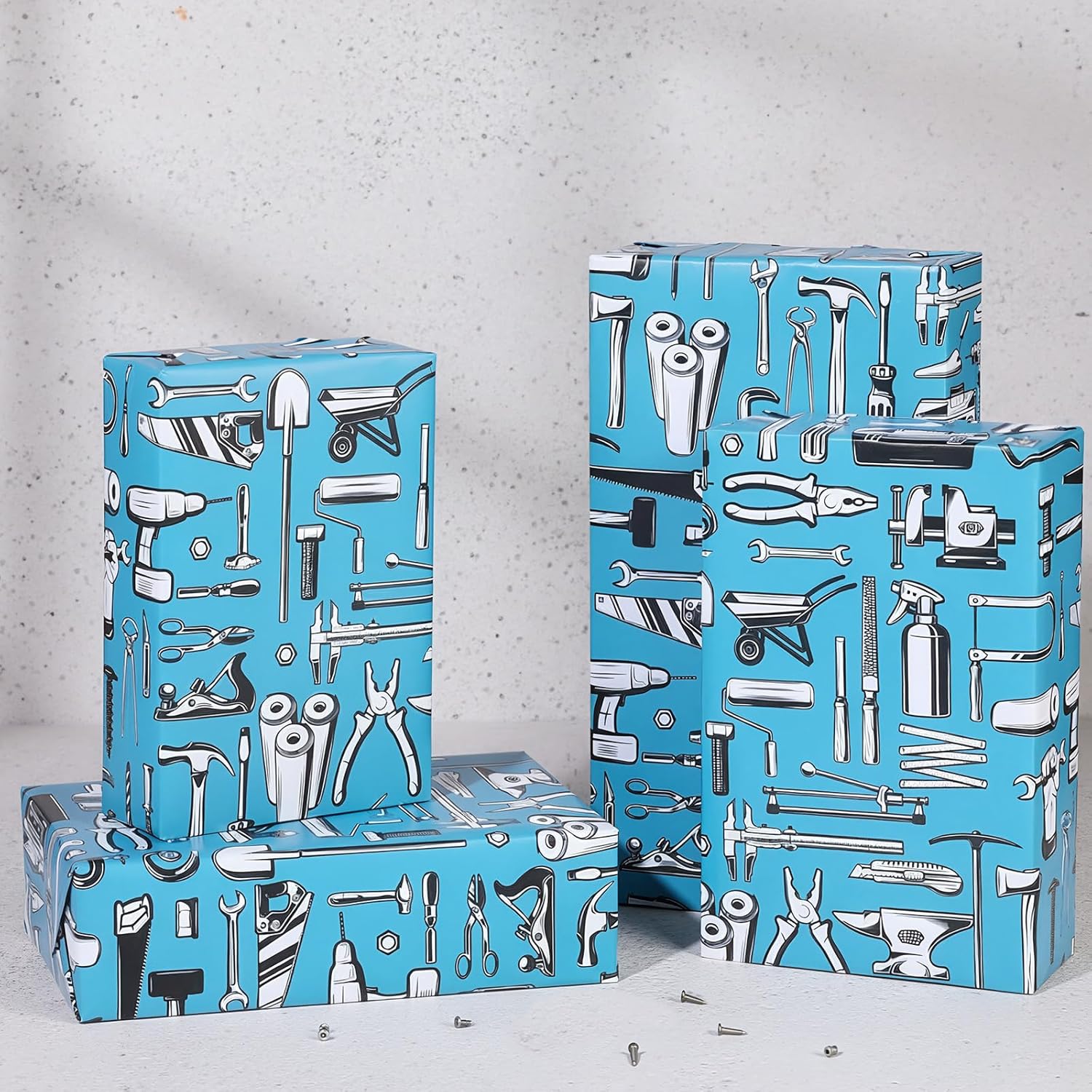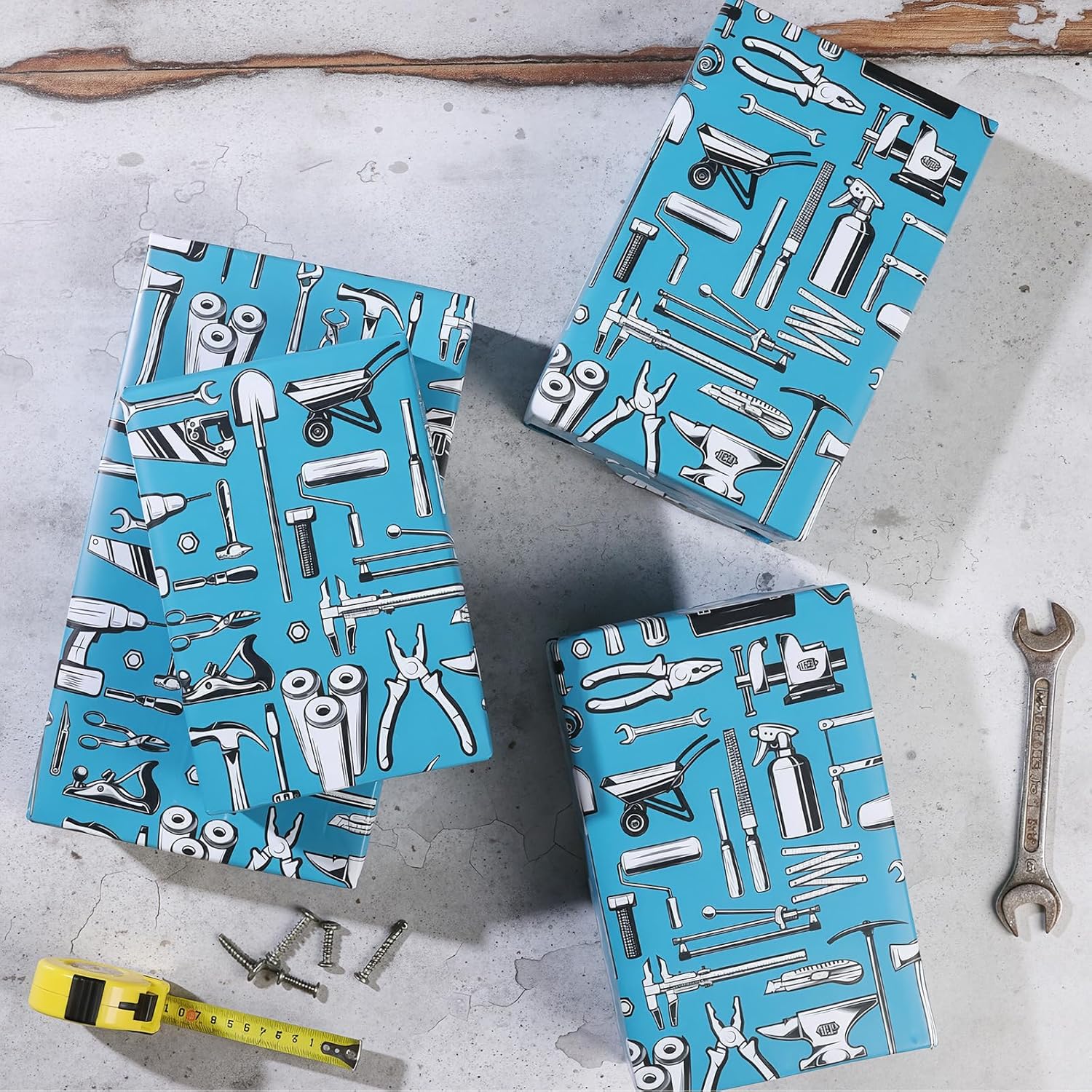 - TOOL-THEMED DESIGN:Featuring a bold,detailed design with various tools including wrenches,power drills,screwdrivers,and saws,this wrapping paper is perfect for handymen and DIY enthusiasts.The high-contrast graphics create visual interest,making every wrapped gift stand out at tool-themed parties,retirements,or workshop celebrations.