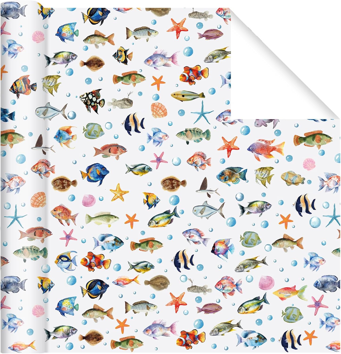 - YOU WILL GET:1 roll of watercolor-style wrapping paper featuring vibrant ocean fish,starfish,and marine life designs.The durable,fade-resistant printing showcases beautiful aquatic colors that make every present special.