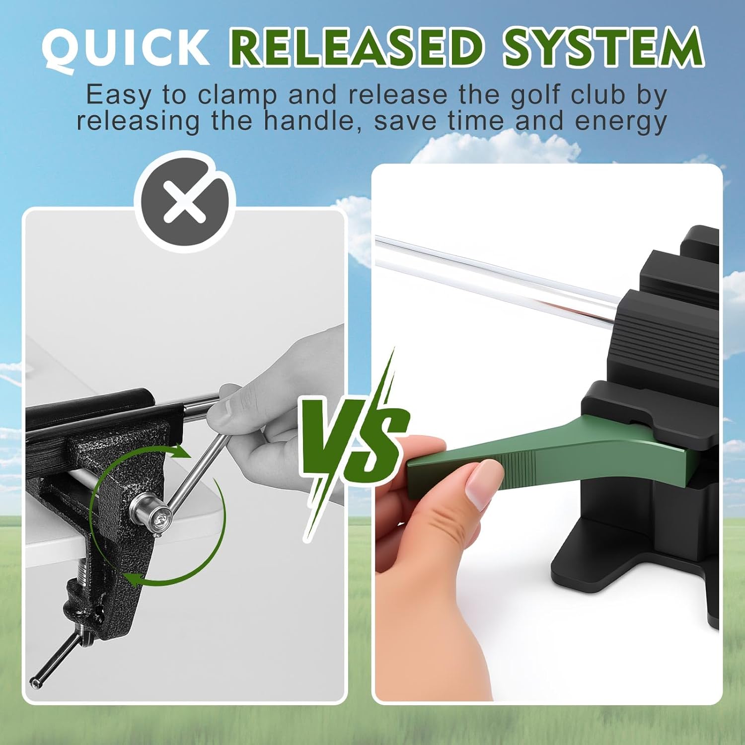 - Quick Clamp and Release: this golf club vise features a quick release design that easily and securely secures and releases the golf club, making regripping, repairs, or adjustments easier