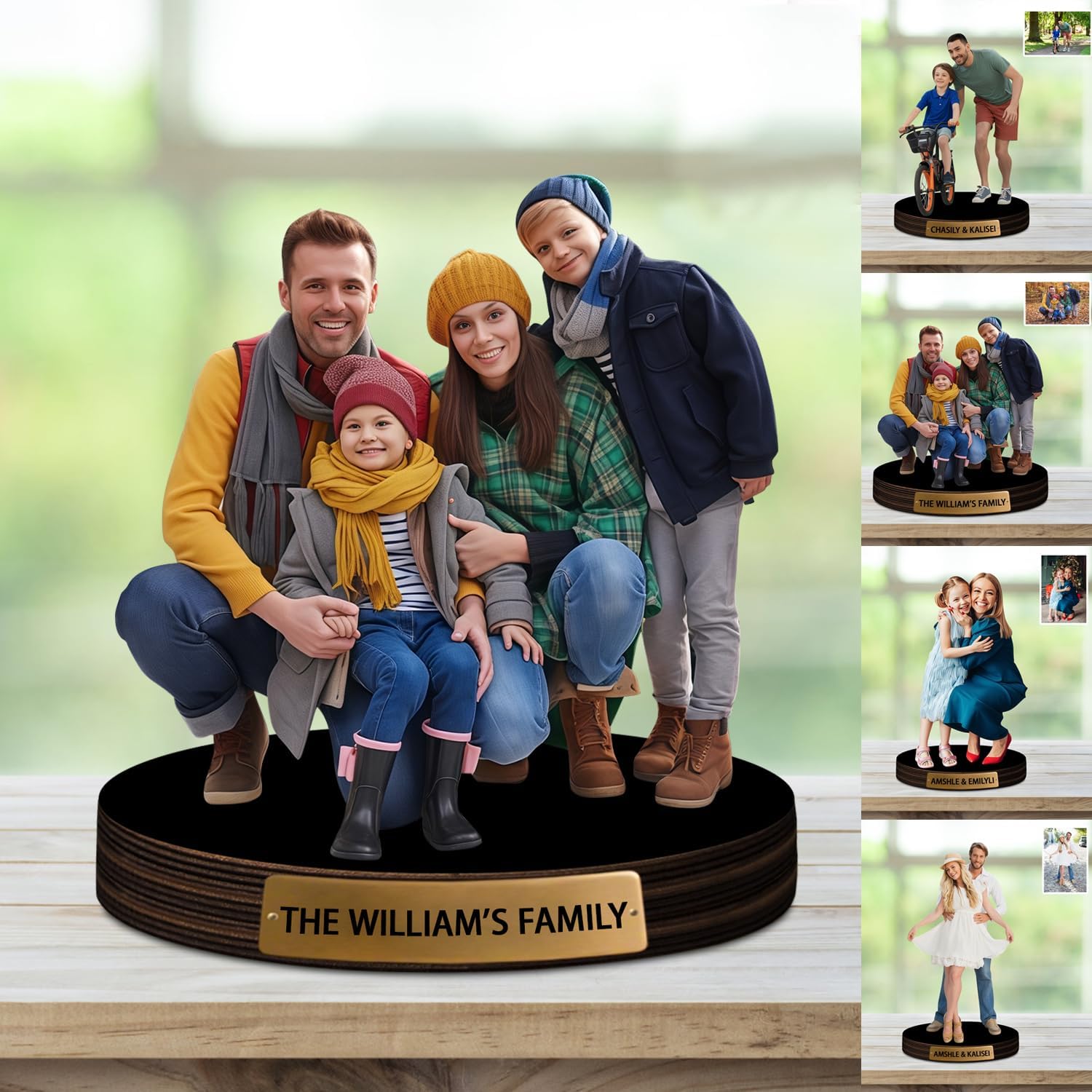 Personalized Family Photo 2D Acrylic Desktop Ornament Custom Couple Picture Figurine Plaque with Name Flat Printing Acrylic Sculpture Desk Sign for Men Women Family Lover Christmas Birthday