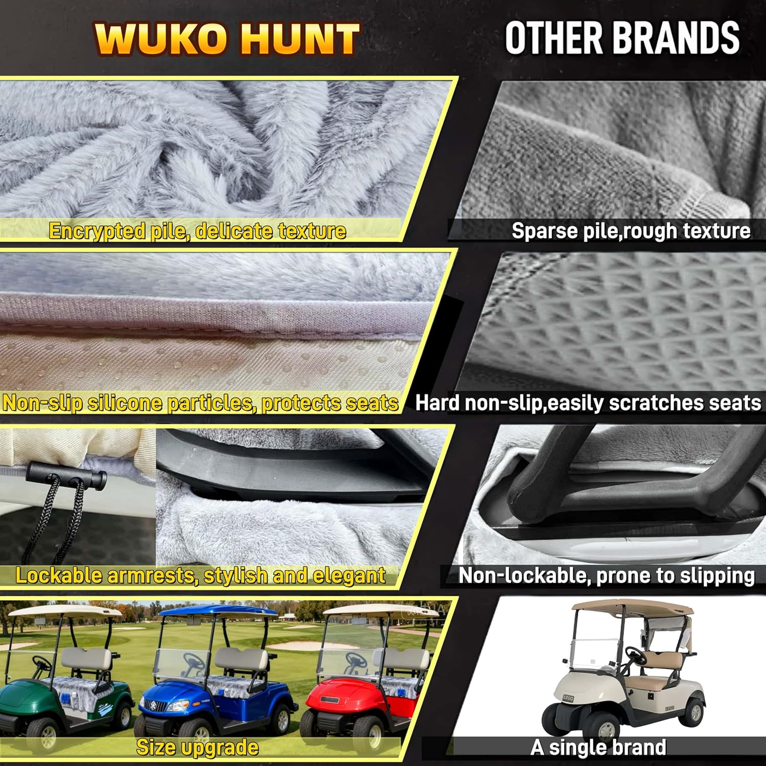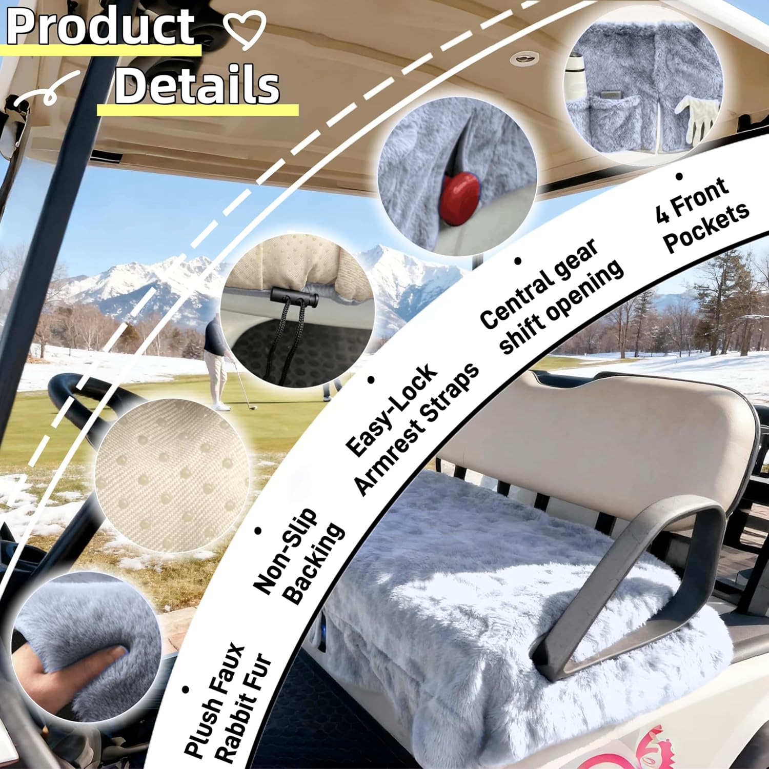 Golf Cart Seat Covers - Soft Faux Fur Seat Blanket, with 4 Pockets, Non-Slip, Thick & Warm, Fit EZGO, Club Car, Yamaha, Epic and Other 2-Seat Golf Cart, All-Season, 51"x 33", Light Gray