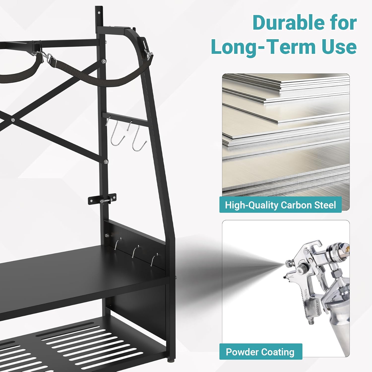 - Sturdy and Durable: Constructed from high-quality steel with a 100LBS weight capacity. The black powder-coated surface is not only stylish but also resistant to daily scratches and fading