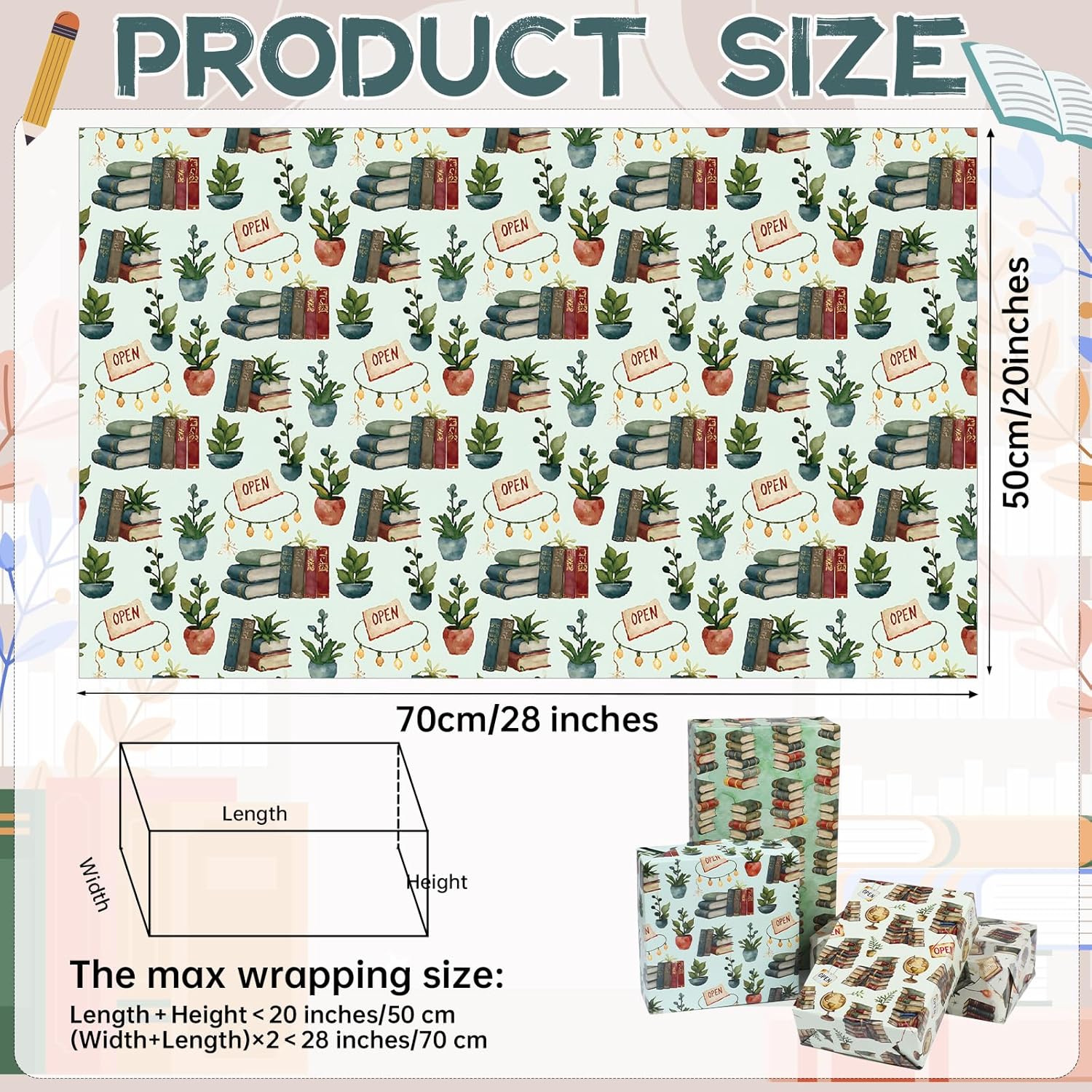 - PERFECT FOR BOOK LOVERS & BUSINESSES:An excellent choice for book-themed parties,author signings,or bookstore promotions,this wrapping paper enhances gift presentations.It also serves as a creative branding tool for bookshops bundling purchases or hosting special events with a literary theme.