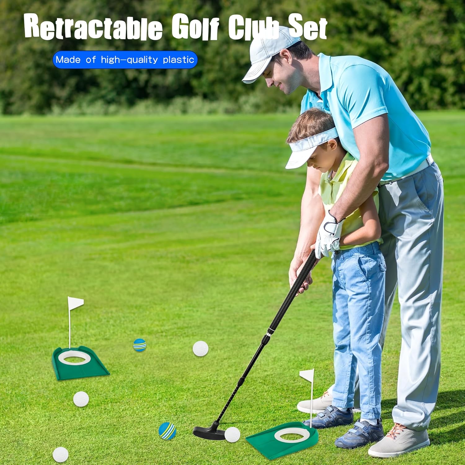 - âś…Practical Design: This kids putter features a high-hardness, solid feel putter and a clearly marked shaft for easy adjustment. The two-way putter head supports both right- and left-handed users , beginner and advanced, offering versatile training and fun for everyone. Retractable design for easy carrying