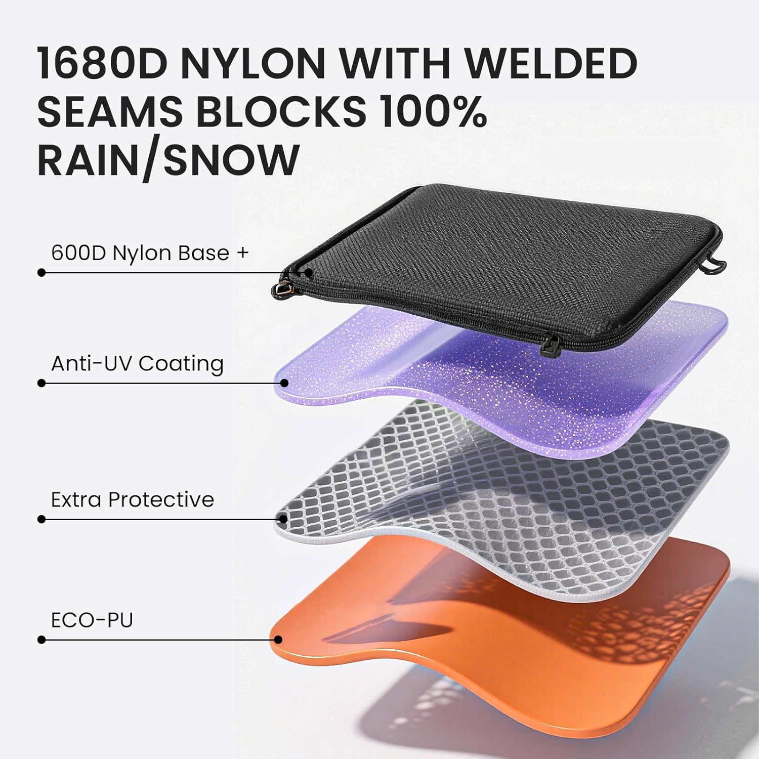 - Heavy-Duty Waterproof Protection: Crafted from rugged 1680D nylon with sealed seams, this top cover forms a reliable waterproof shield that stops rain and snow cold. The ultimate protector for unpredictable weather days.