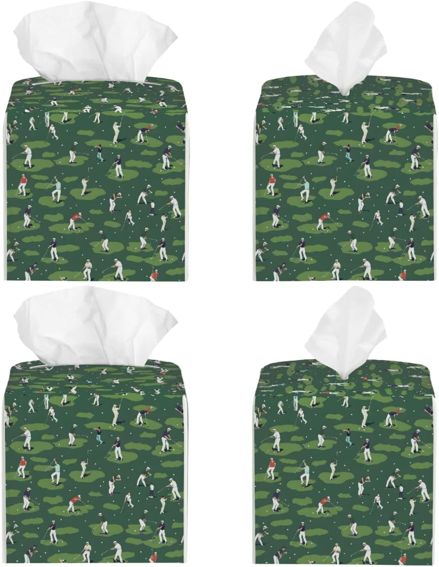 Square Leather Tissue Box Cover, Waterproof Napkin Dispenser with Golf Golf Player Print, Tissue Holder for Bathroom, Living Room, Bedroom, Office, and Car Decor