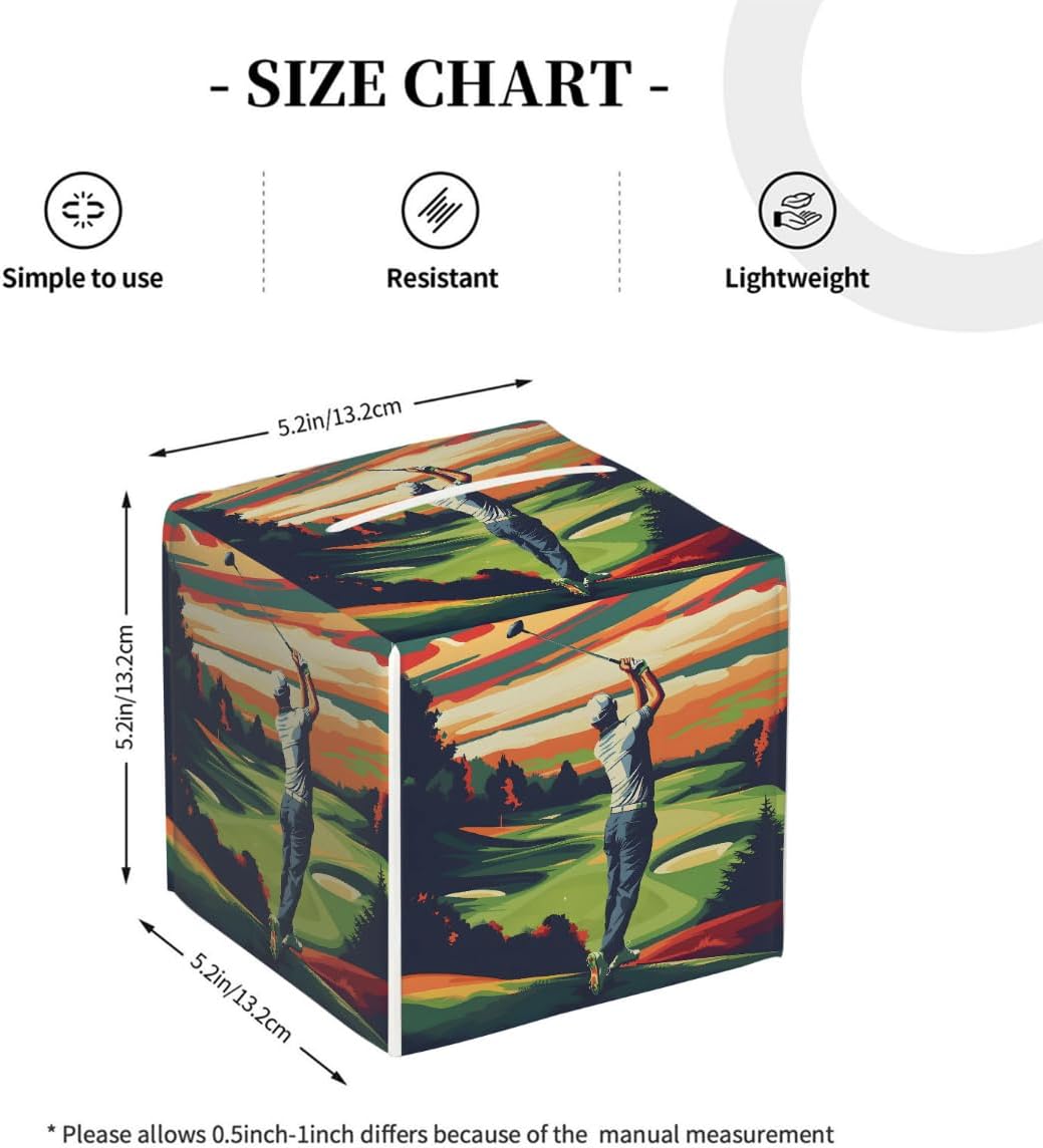 Square Leather Tissue Box Cover, Waterproof Napkin Dispenser with Golf Ball Golf Lover Print, Tissue Holder for Bathroom, Living Room, Bedroom, Office, and Car Decor