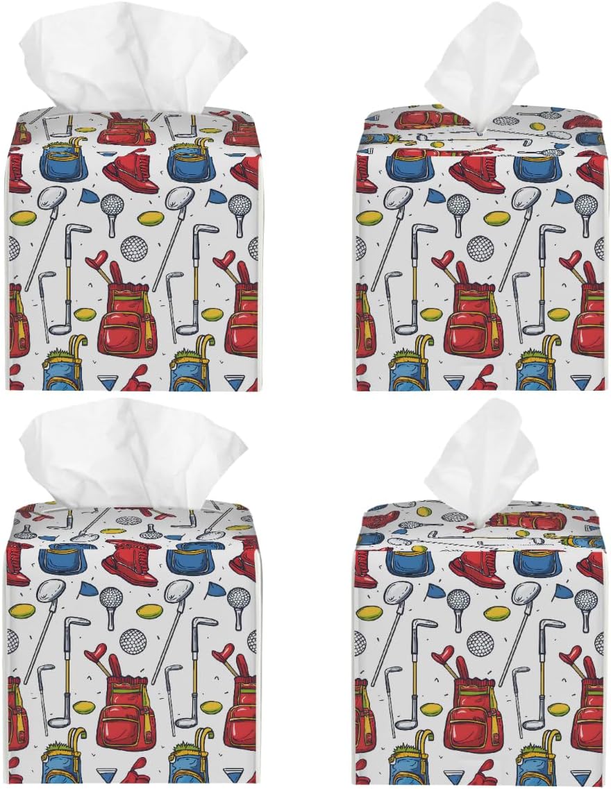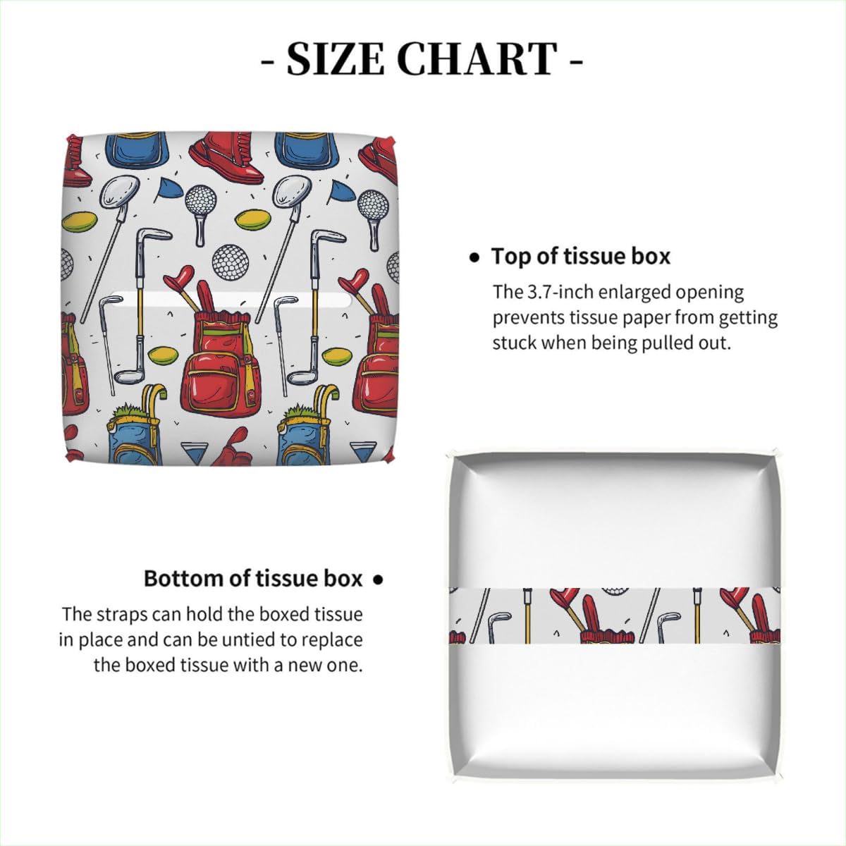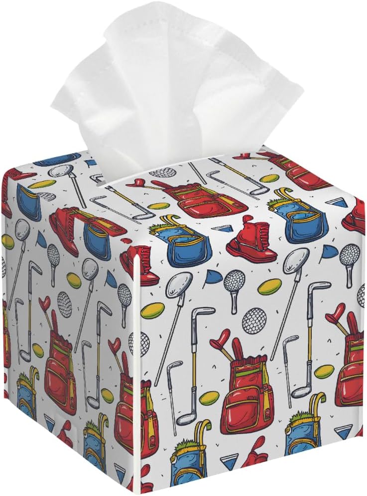 Square Leather Tissue Box Cover, Waterproof Napkin Dispenser with Golf Balls Print, Tissue Holder for Bathroom, Living Room, Bedroom, Office, and Car Decor