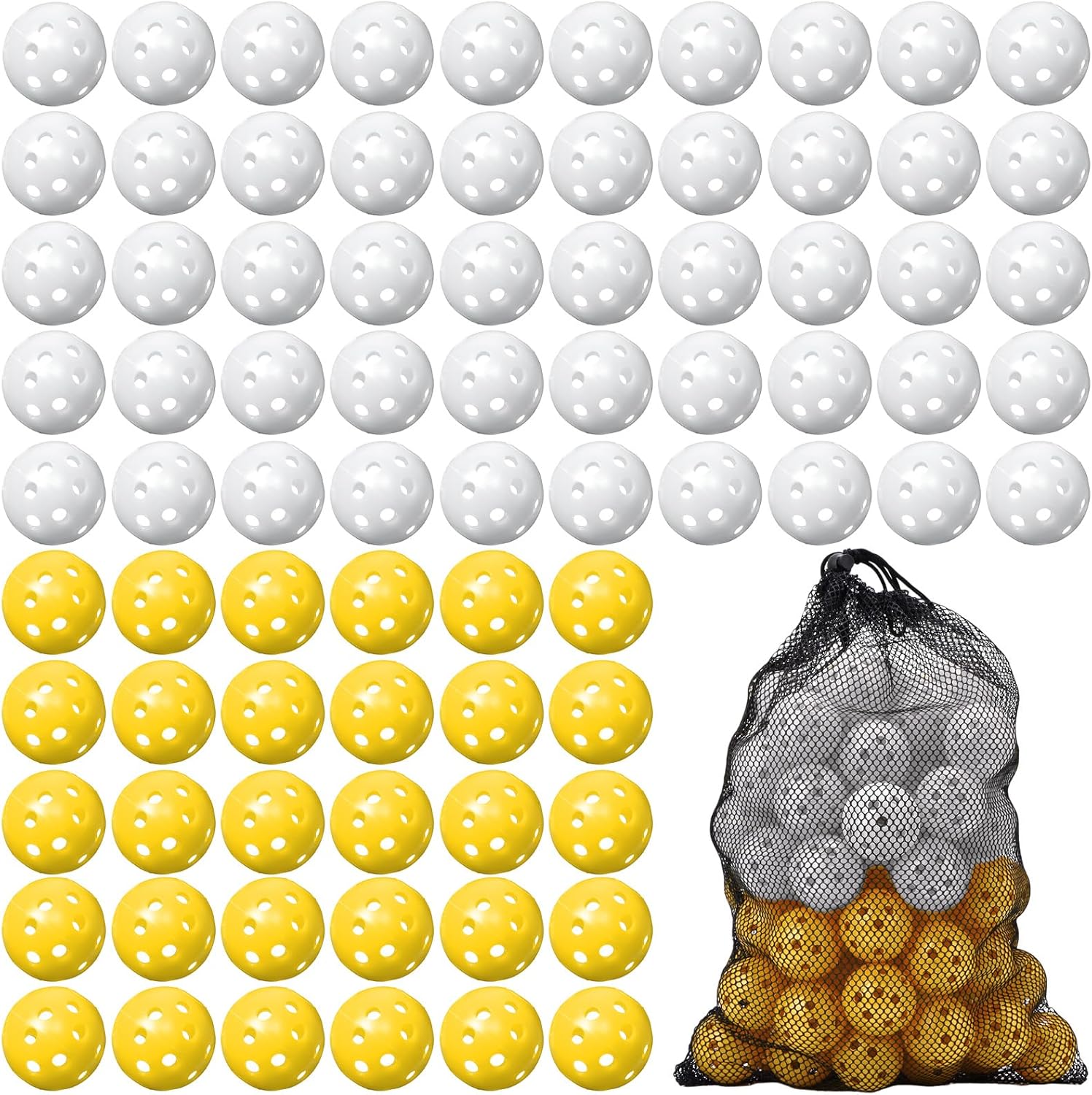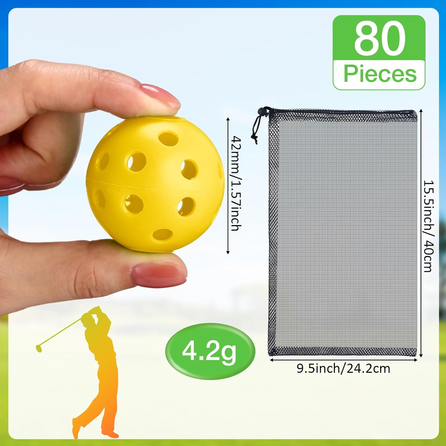 80 Pack Practice Golf Balls Limited Flight 42 mm Golf Training Airflow Hollow Plastic Ball for Women Men Indoor Outdoor Driving Range Swing Practice Home