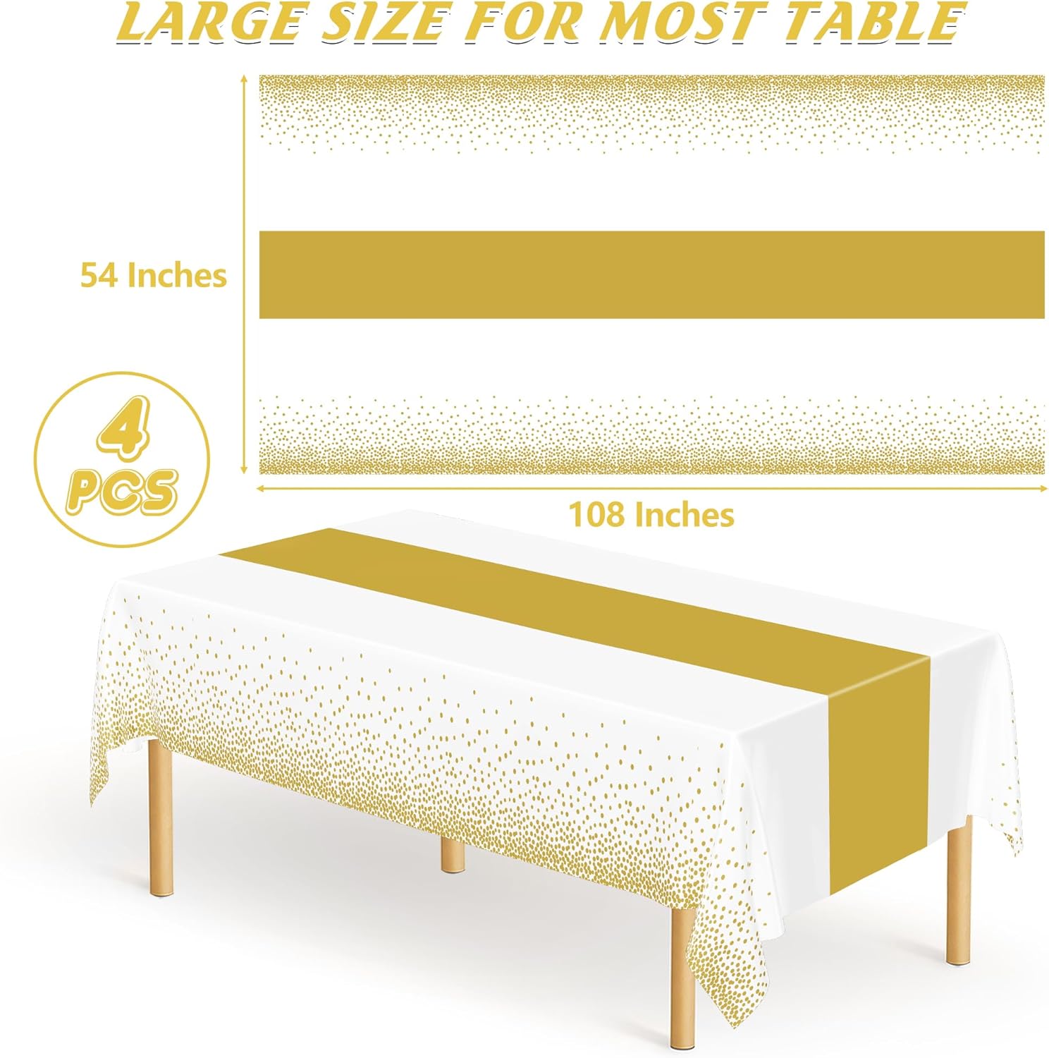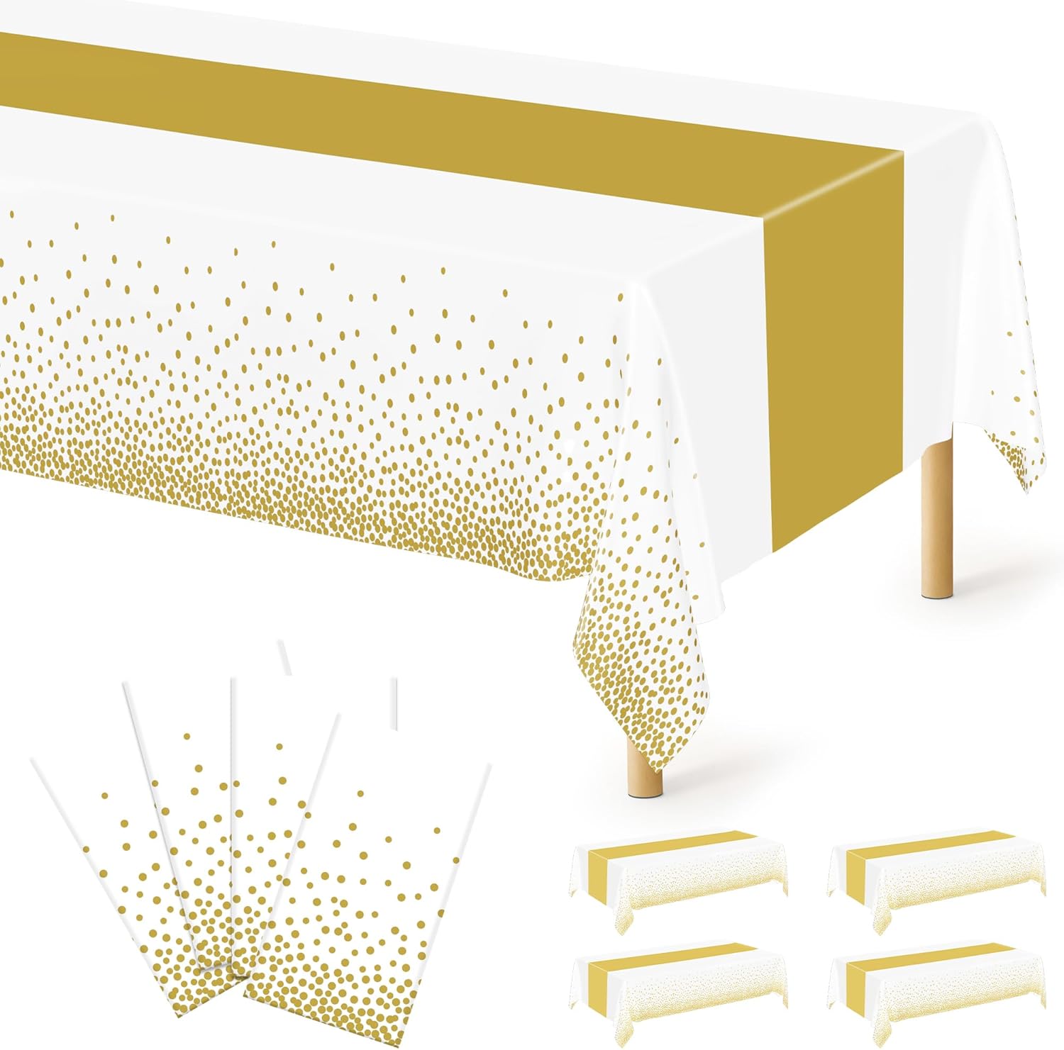 - Package Includes: Transform your New Year's party with our disposable table cover set! Featuring 4 pieces in a striking gold dot design, these table cloths are perfect for both indoor celebrations and outdoor festivities, ensuring your event shines