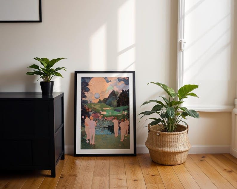 Nationcog Retro Golf Oil Painting Wall Art, Vintage Abstract Sports Print for Bar, Office or Game Room Decor, Masters Course Golfer Artwork with Tee Time Theme (Unframed) (20x30)