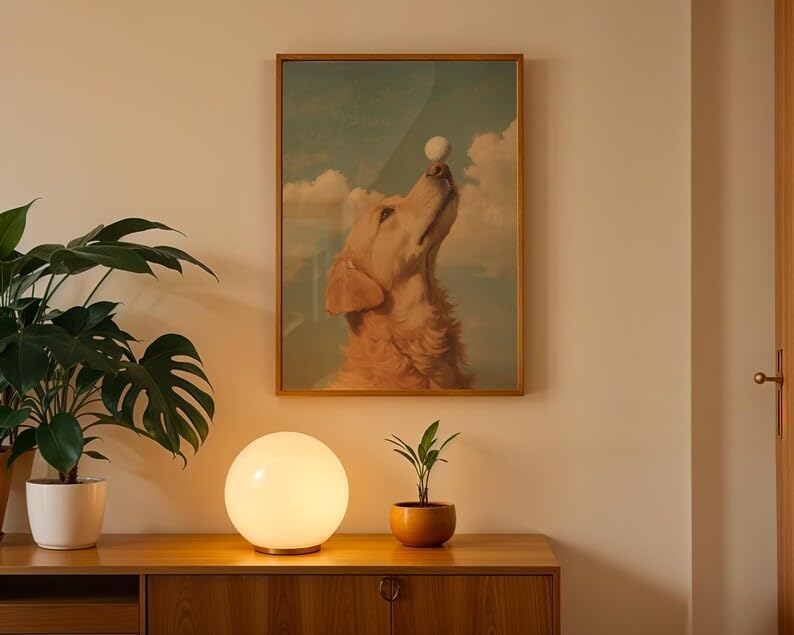 Nationcog Elegant Golden Retriever Golf Wall Art, Retro Dog Sports Oil Painting Print for Bar, Office or Home Decor, Playful Golfer Artwork for Dog Lovers (Unframed) (12x18)