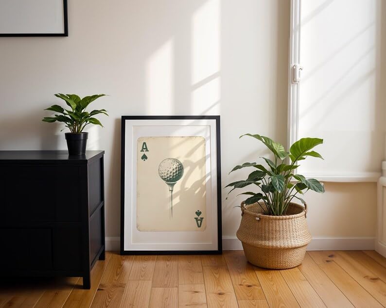 Nationcog Vintage Golf Playing Card Wall Art, Retro Ace of Spades Sports Print for Bar, Office or Game Room Decor, Classic Golfer Poster with Tee Time Theme (Unframed) (11x14)