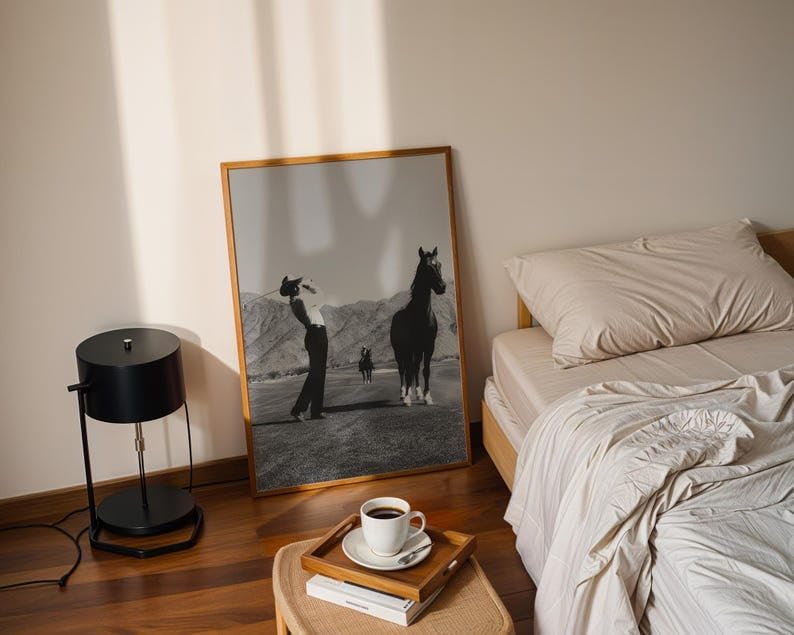 Nationcog Vintage Western Cowboy Golf Wall Art, Retro Black and White Sports Photography Print for Bar or Office Decor, Rustic Golfer Artwork for Country Homes (Unframed) (9x11)