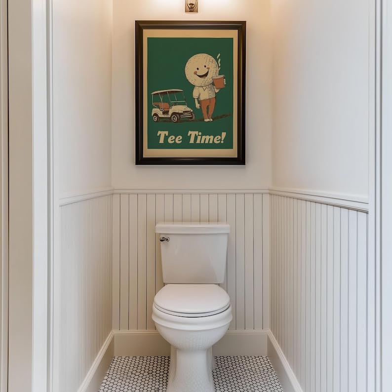 Vintage Tee Time Golf Wall Art, Retro Sports Poster Print for Bar, Office or Game Room Decor, Whimsical Golfer Artwork with Coffee and Golf Cart (Unframed) (24x36)