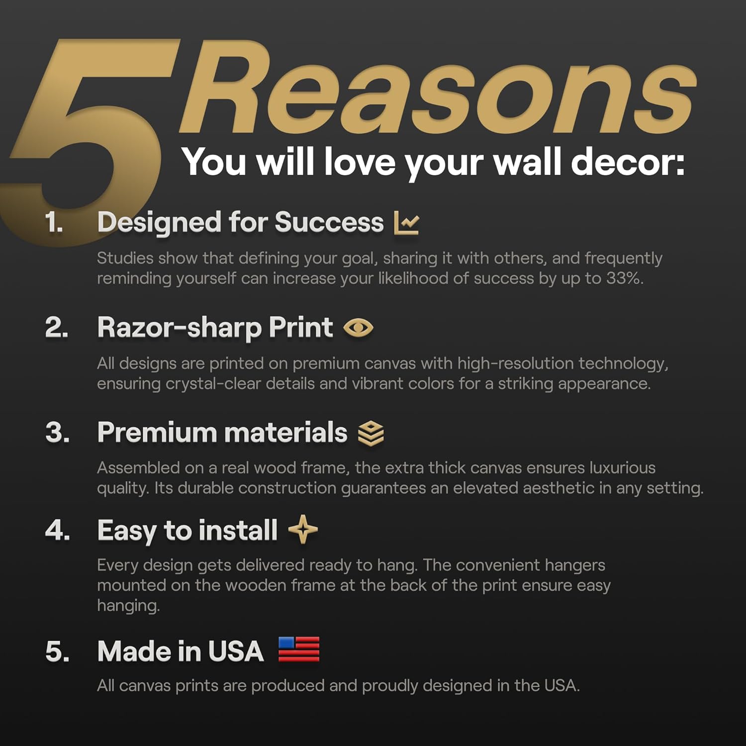 - Achieve Your Dreams – To be an entrepreneur takes a special kind of person - someone with focus, grit, and desire to succeed. Our motivational canvas prints for entrepreneurs are a daily reminder that your dreams are possible.