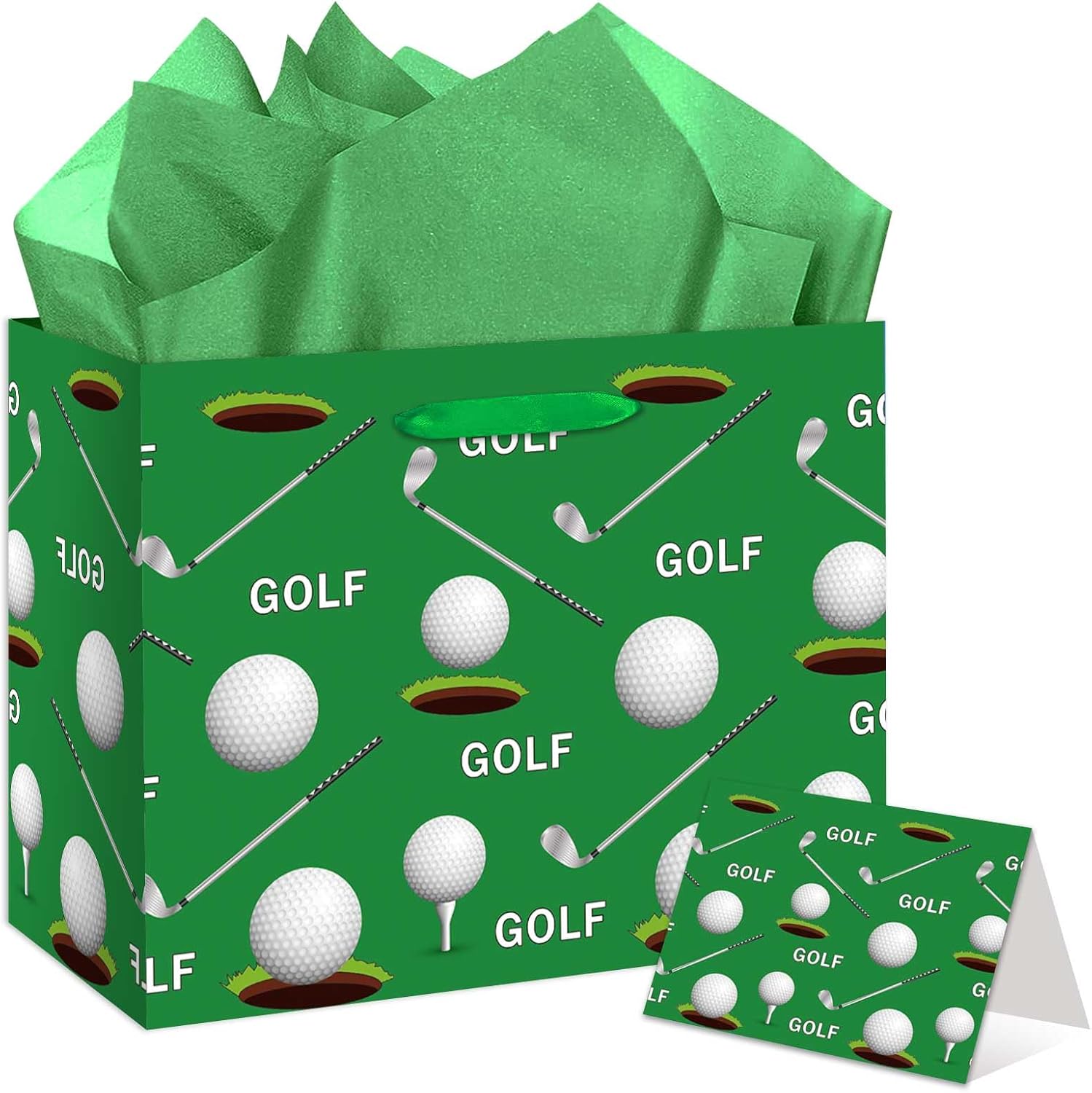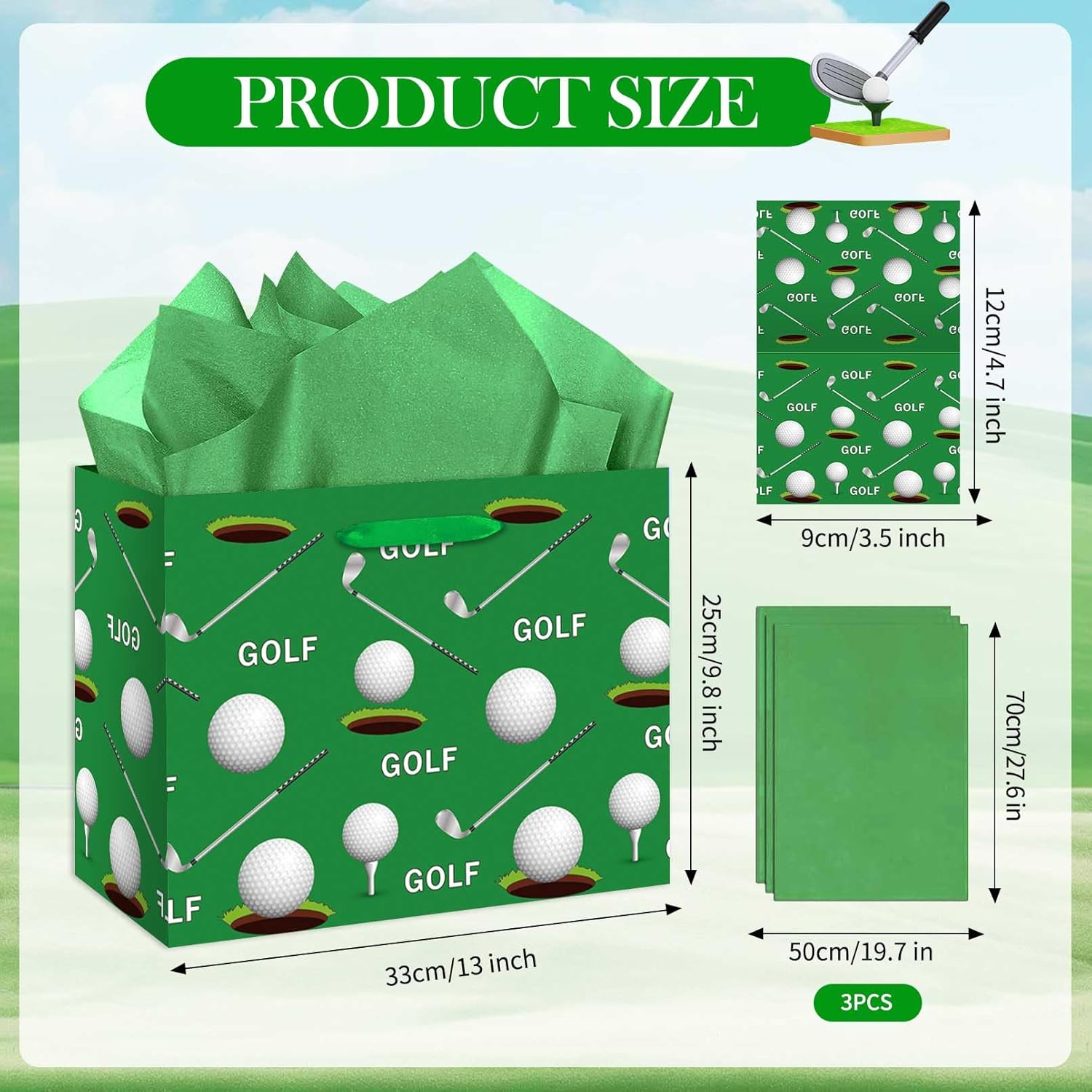 - What You Get: This golf themed gift bag set contains one green and white golf gift bag, one golf-themed card, three green tissue papers, and one envelope, ideal for golf-themed party preparations and special occasion gifting needs.
