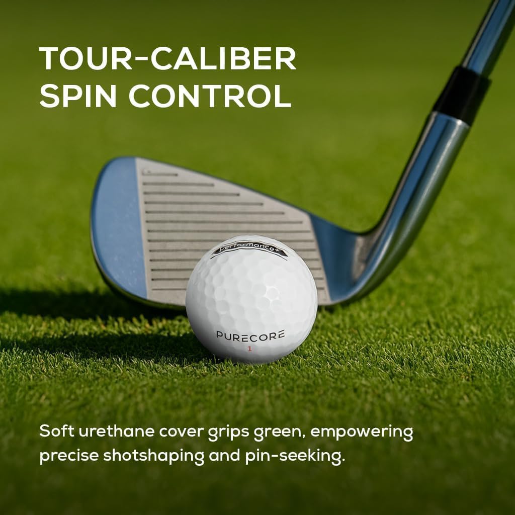 PURECORE Performance+ Distance Golf Balls – Premium 3-Piece Urethane | 98 Compression | Extra Soft Feel, Predictable Flight, Balanced Spin & Consistent Distance