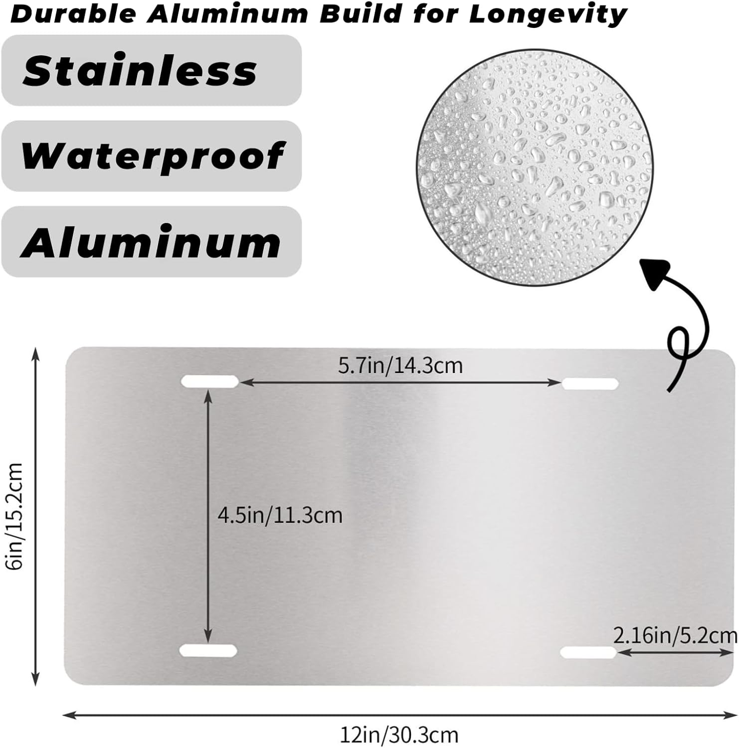 - Fits All U.S. Vehicles with Hassle-Free Installation Designed to the standard 6x12 inch size, these plates fit perfectly with all U.S. license plate frames. Pre-drilled holes align with most car/truck mounting points, so you can install in minutes with basic tools—no extra hardware or modifications required, compliant with every state’s regulations.