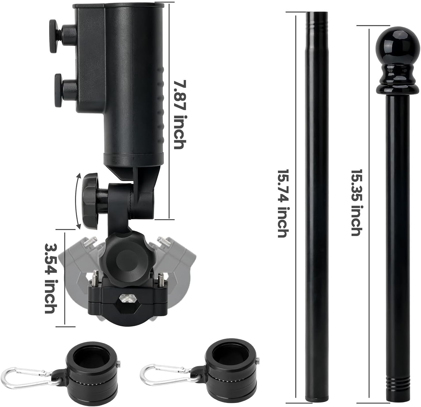 - 【Double Pack Value】Includes 2 adjustable brackets, 2 embroidered USA flags (12"x18"), 4 stainless steel poles, and 4 clip hooks. Perfect for sharing or displaying on both sides of your golf cart.