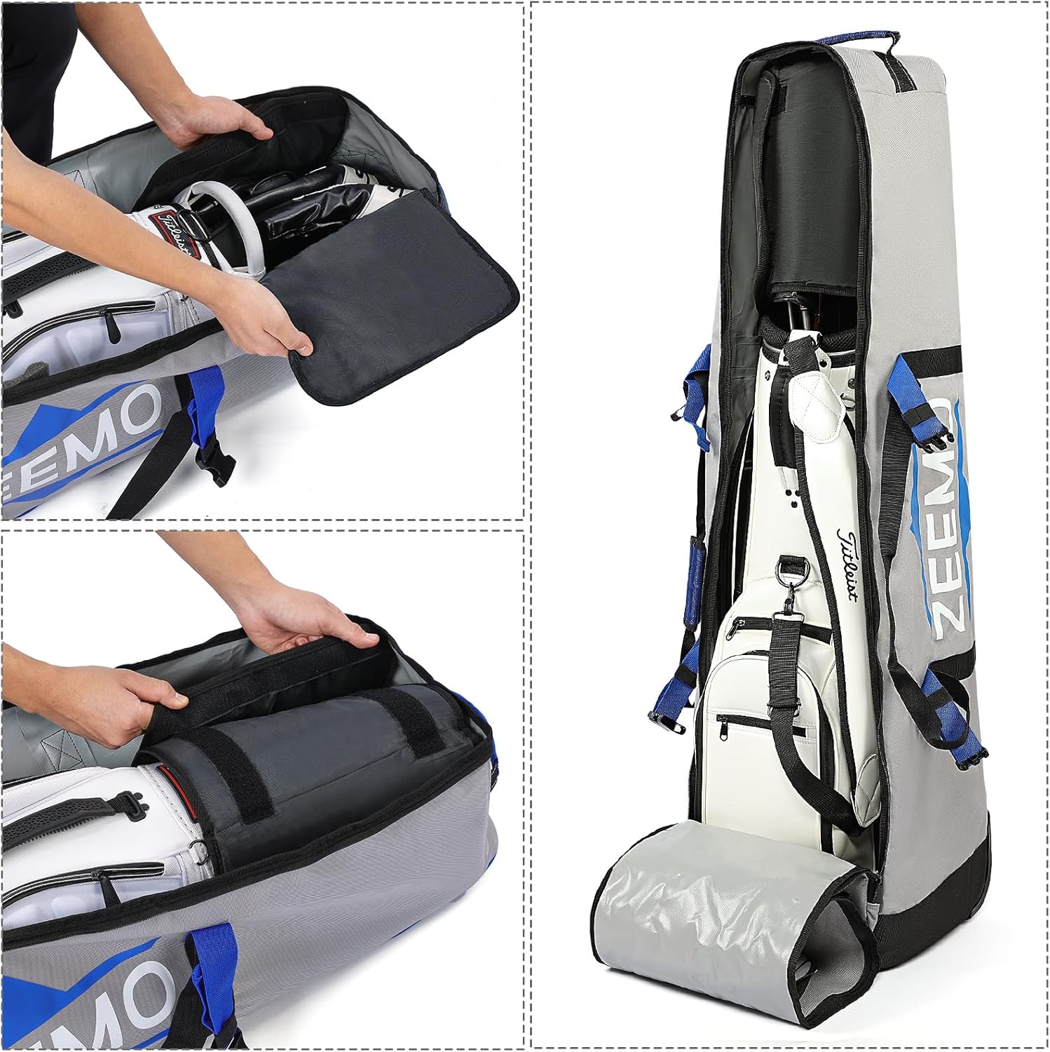 ZEEMO Golf Travel Bag, Full-Open Protective & Wheeled Airline-Approved Case for Clubs, Cart&StandBag, Soft-Sided Waterproof Cover Made of Heavy Duty Oxford