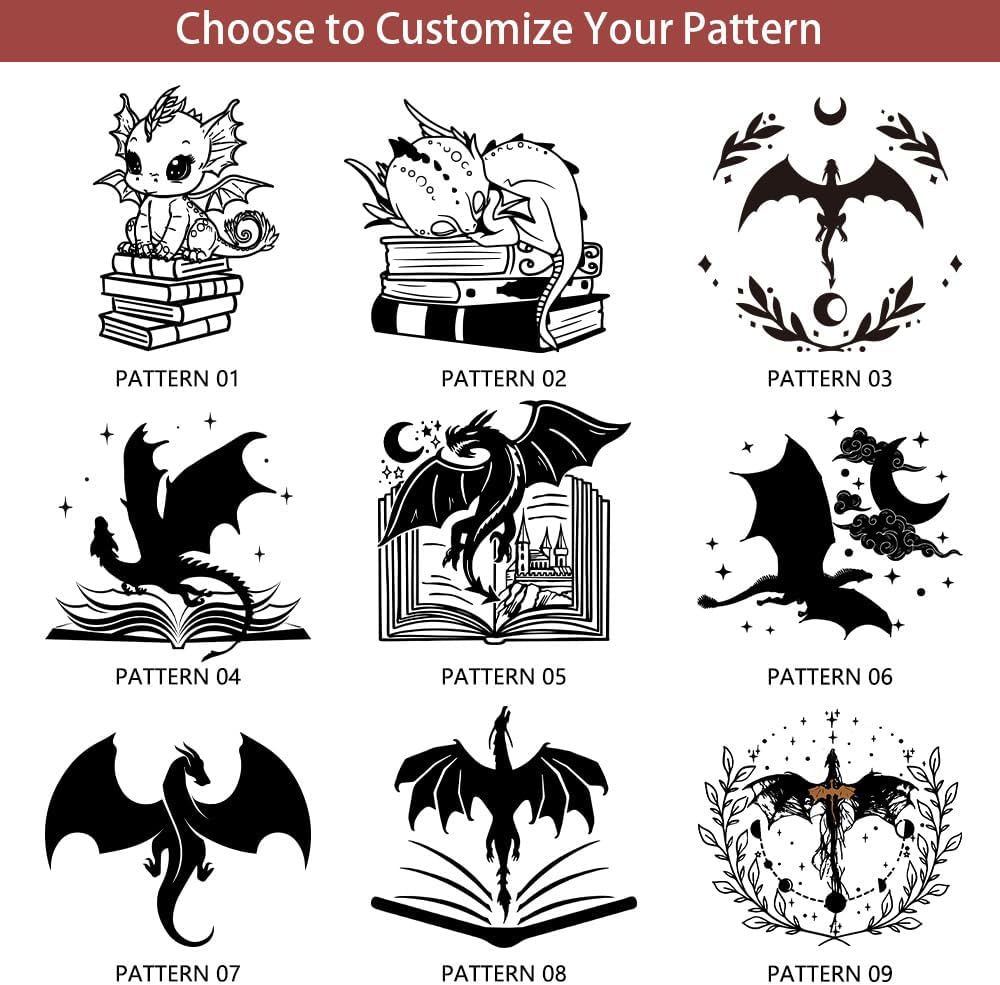 - Adorable Book Dragon Design: Features a playful dragon symbolizing a love for reading, with whimsical elements like castles, flowers, and moons.