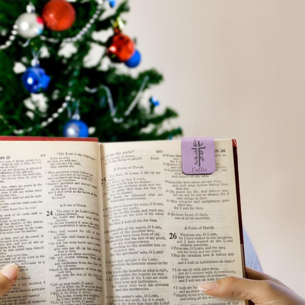 CALLIE Personalized Magnetic Bookmark Clip – Custom Name Reading Gifts for Book Lovers, Birthday Teacher's Day Christmas for Bookworm Gifts (Cross Flower)