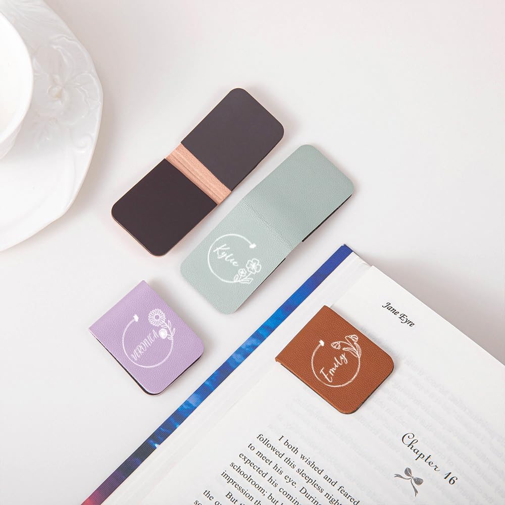 CALLIE Personalized Magnetic Bookmark Clip – Custom Name Reading Gifts for Book Lovers, Birthday Teacher's Day Christmas for Bookworm Gifts (Birth Flower Wreath)
