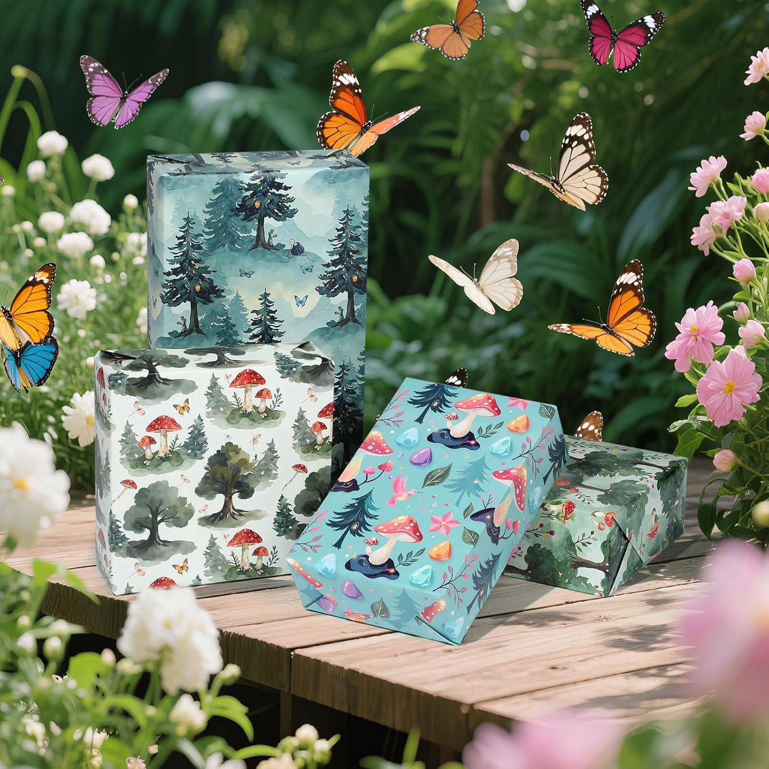 - 12 SHEETS:This forest-themed wrapping paper set includes 12 high-quality sheets,with 3 sheets per enchanting design.Pre-folded for compact storage,this set is perfect for personal gifting or small businesses.The durable material ensures vibrant prints that bring nature’s charm to every gift.