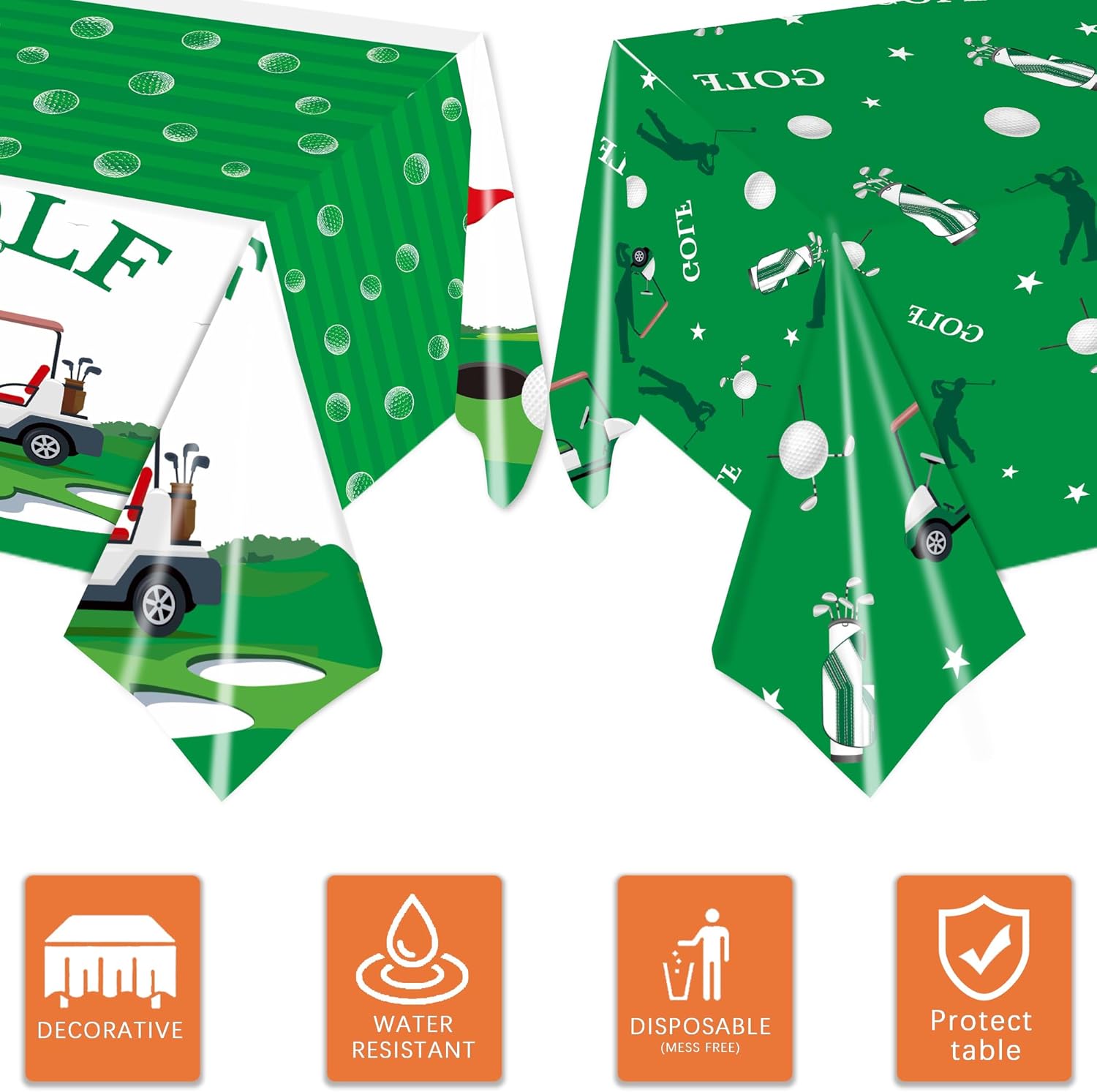 - 【Golf Ball Design】The gift you received is 4 green plastic tablecloths with two different golf themes for parties. Start your golf party immediately with two different styles to make your party more attractive and your guests will be satisfied