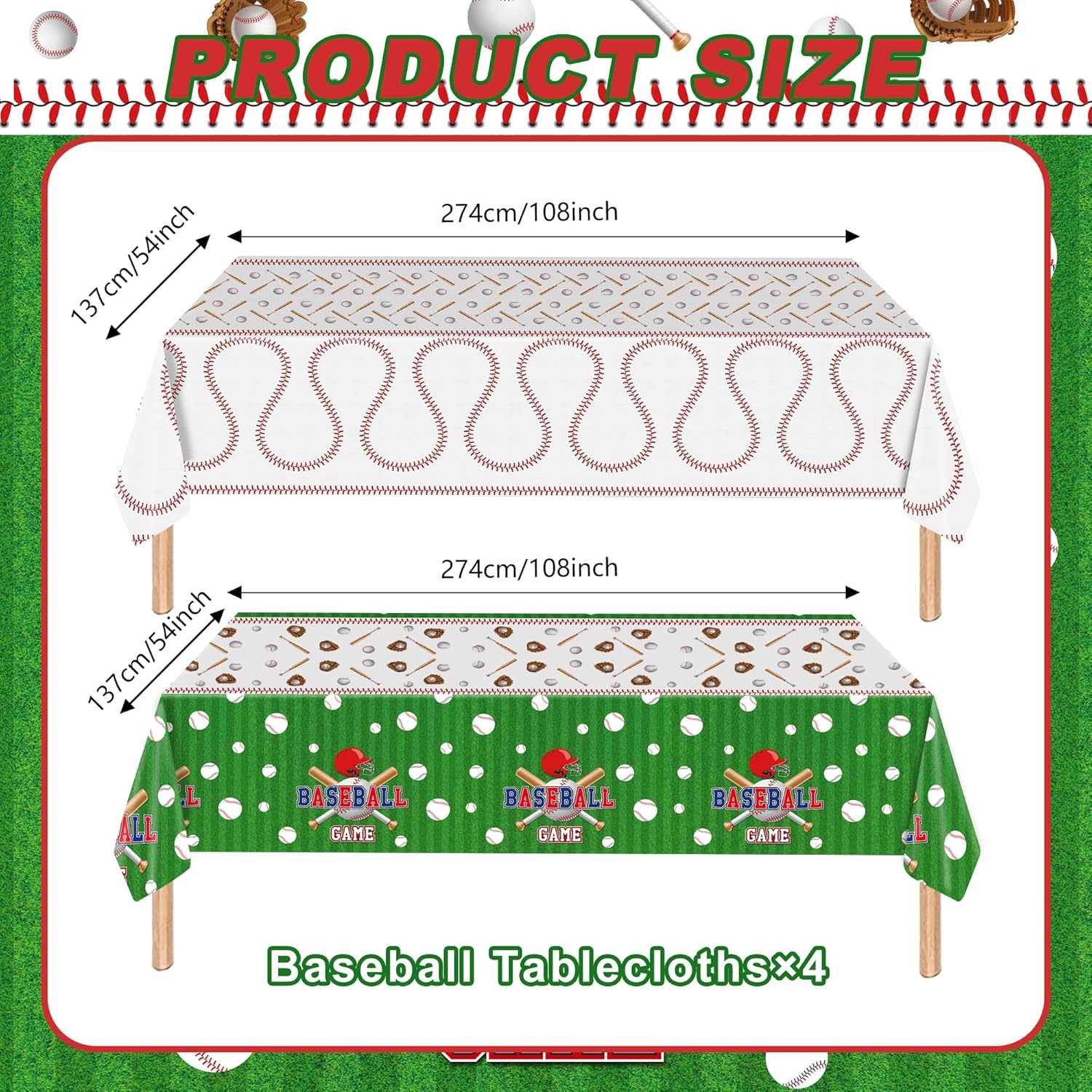 4 Pcs Baseball Tablecloths, Rectangular Baseball Pattern Table Cloth Disposable Party Decorations Table Covers for Boys Sports Event Birthday Party Supplies, 54x108 Inch