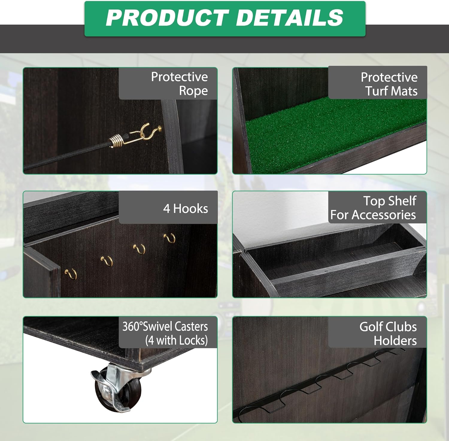 • EXTRA LARGE CAPACITY : This storage cabinet can accommodate 2 full-size bags, 4-5 pairs of golf shoes, approximately 10 golf clubs, and accessories.