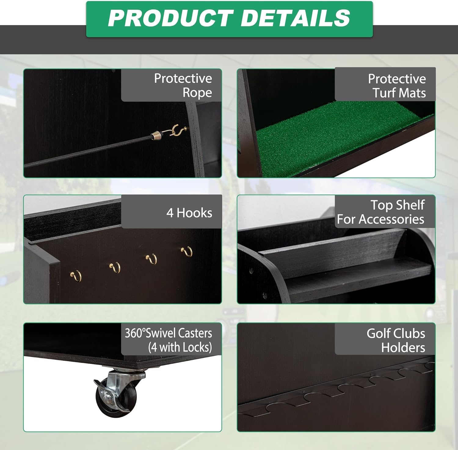 - EXTRA LARGE CAPACITY : This storage cabinet can accommodate 2 full-size bags, 4-5 pairs of golf shoes, approximately 10 golf clubs, and accessories.