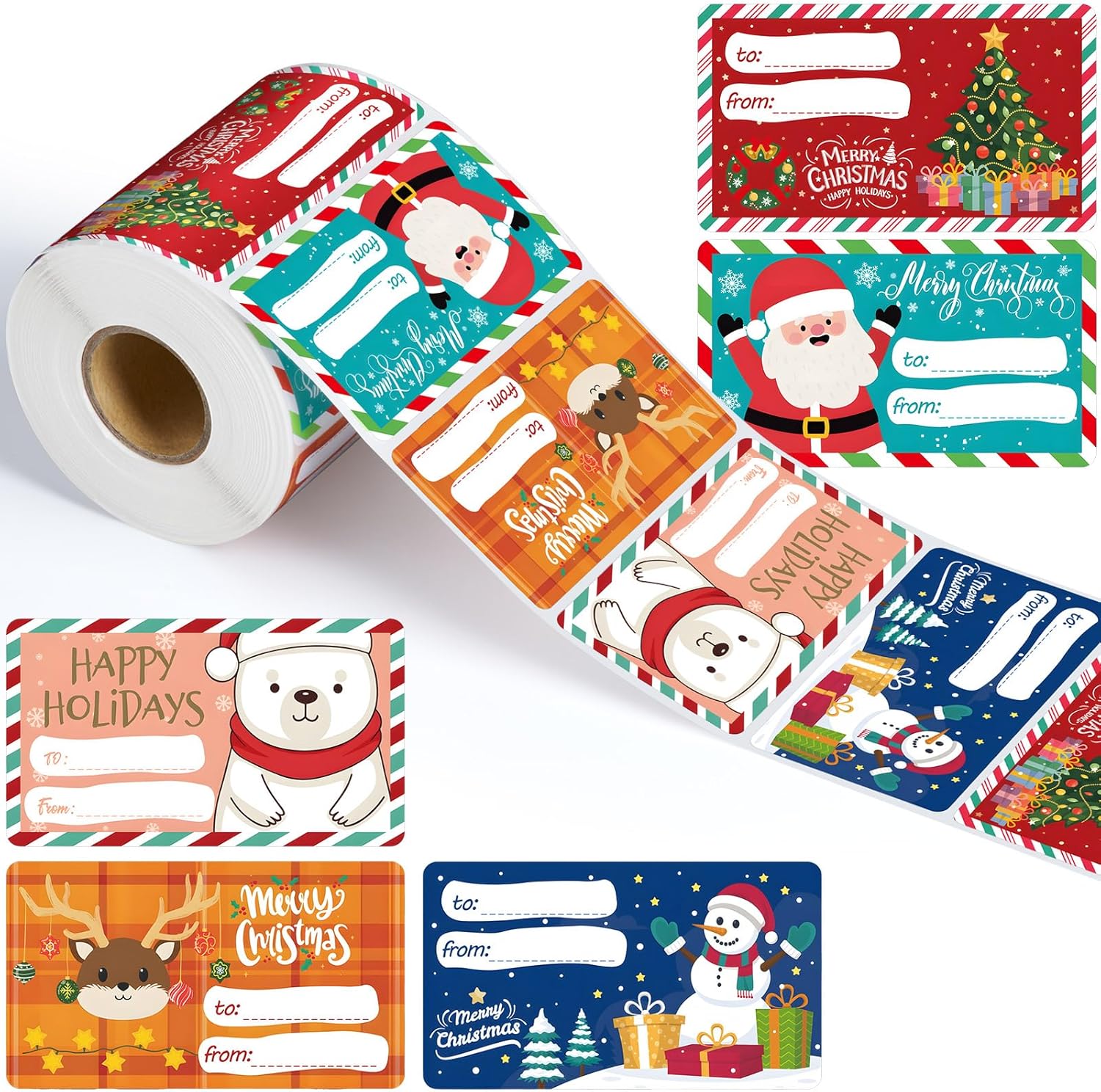 Outus 500 Pieces Christmas Tags Self Adhesive Gift Tags for Xmas Presents Christmas Name Labels Stickers for Wrapping Paper Festival Birthday Holiday Decor (Multicolor Style,2.76 x 1.57 Inch)