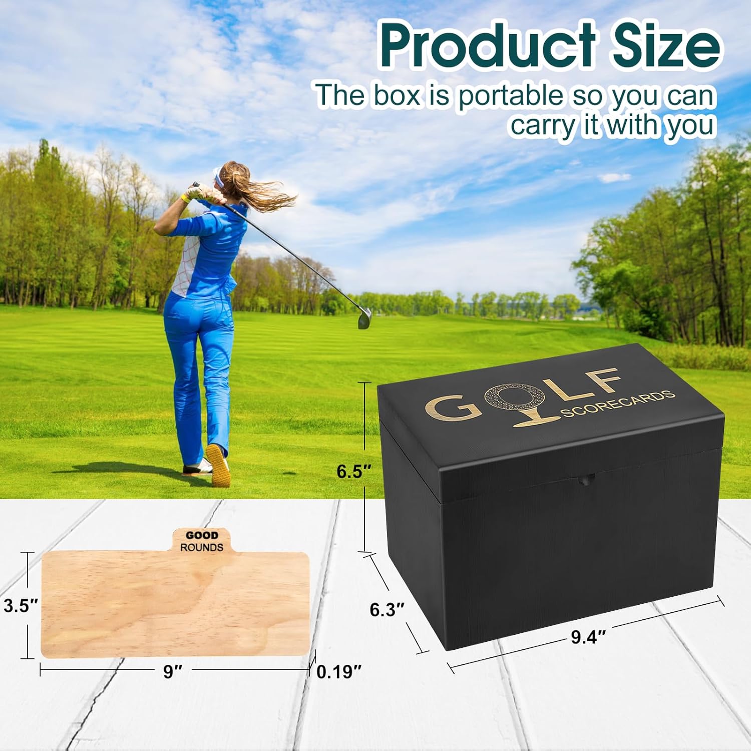 Golf Scorecard Collection Box, Golf Storage Box With 5 Wooden Dividers, Scorecard Keeper For Keepsakes Cards Club Storage Score Book Pencil Log, Unique Golf Gift (Black)